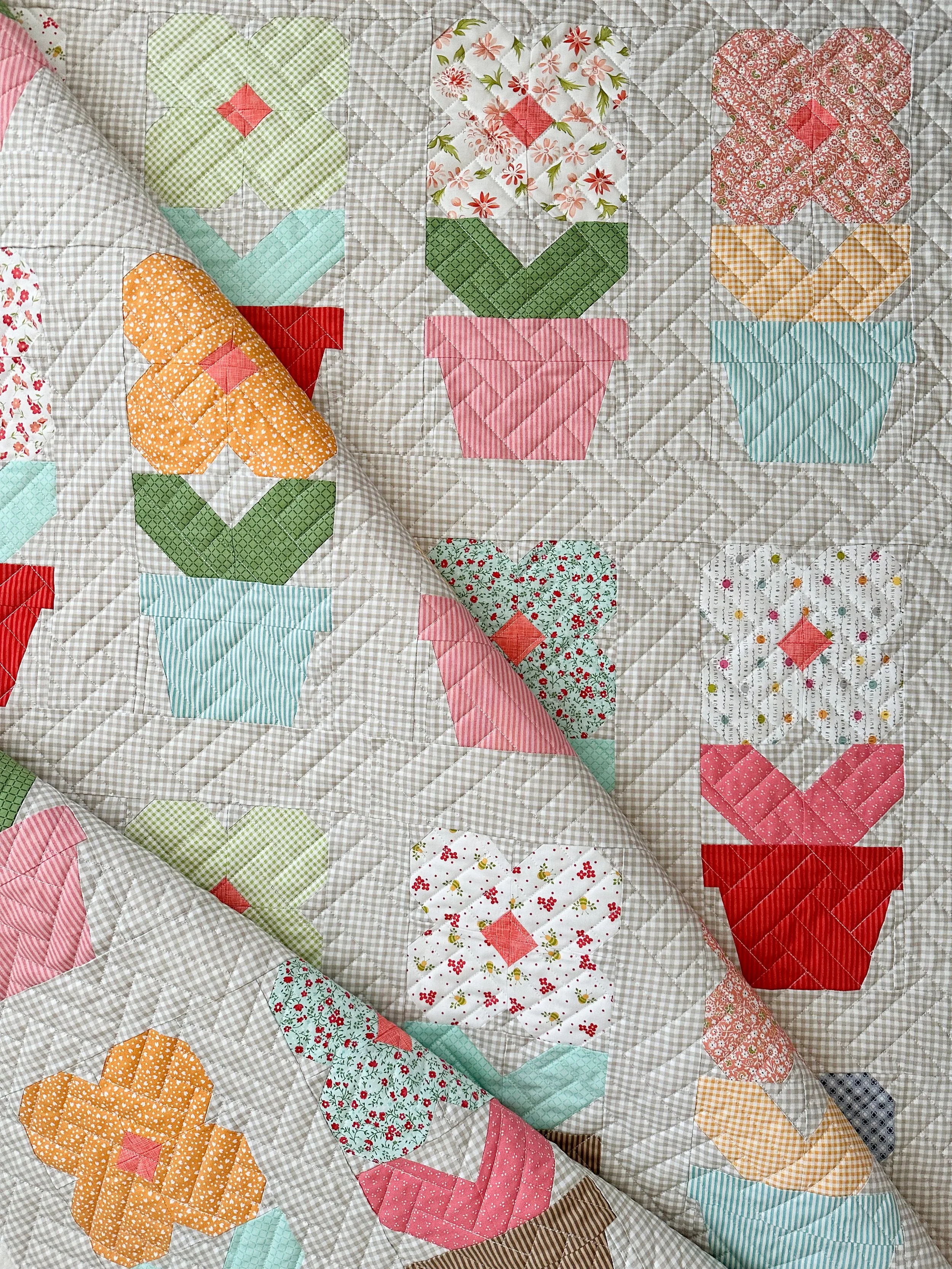 Guess what??? This pattern is called Potted Flowers by Tilda and itβs FREE!! Here is the link: https://www.tildasworld.com/wp-content/uploads/2024/06/Potted-Flowers-Quilt.pdf