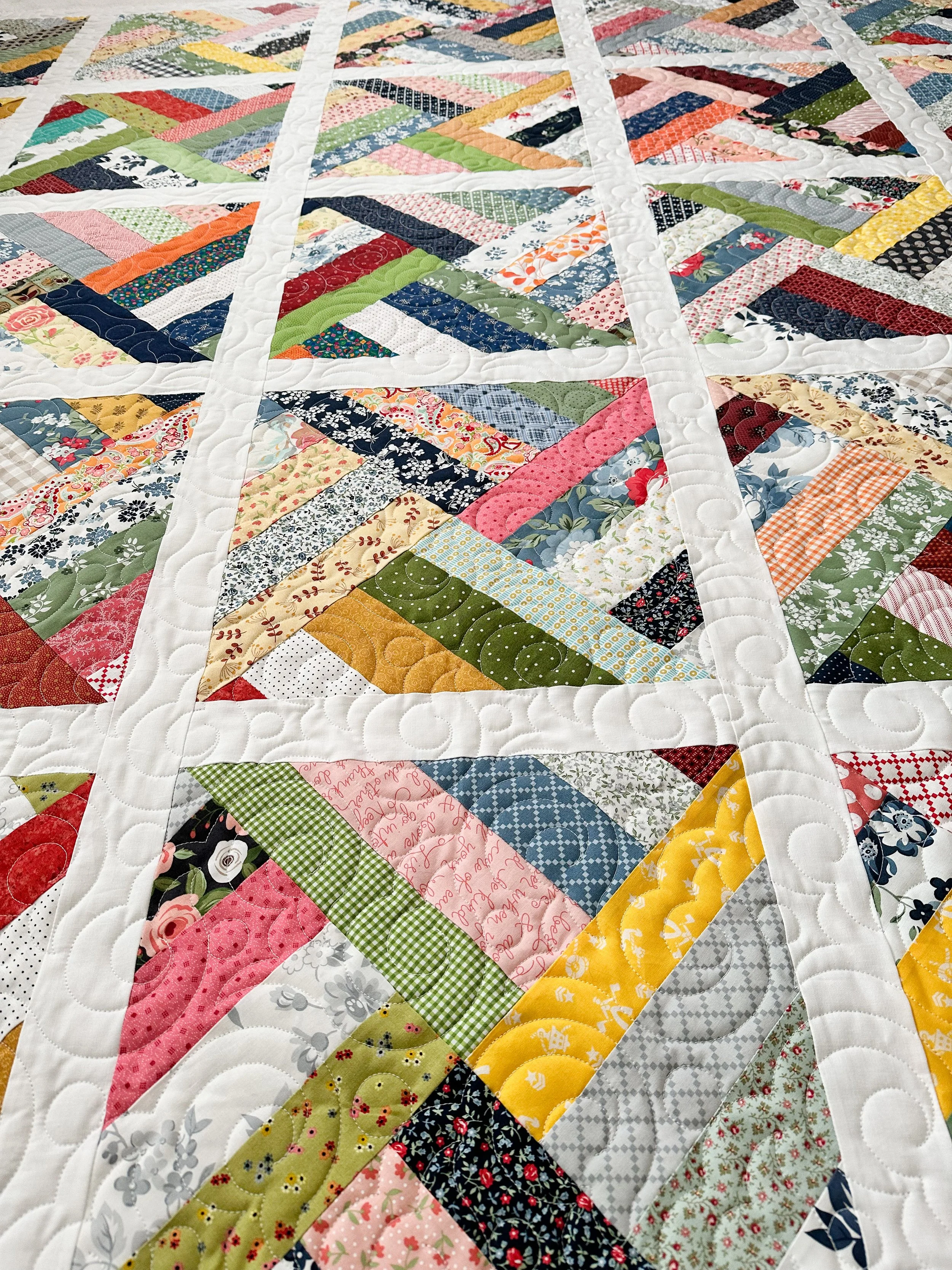 Jennifer added a scrappy square border to hers. Which is a fun way to frame the whole quilt and use up the extra fabrics.