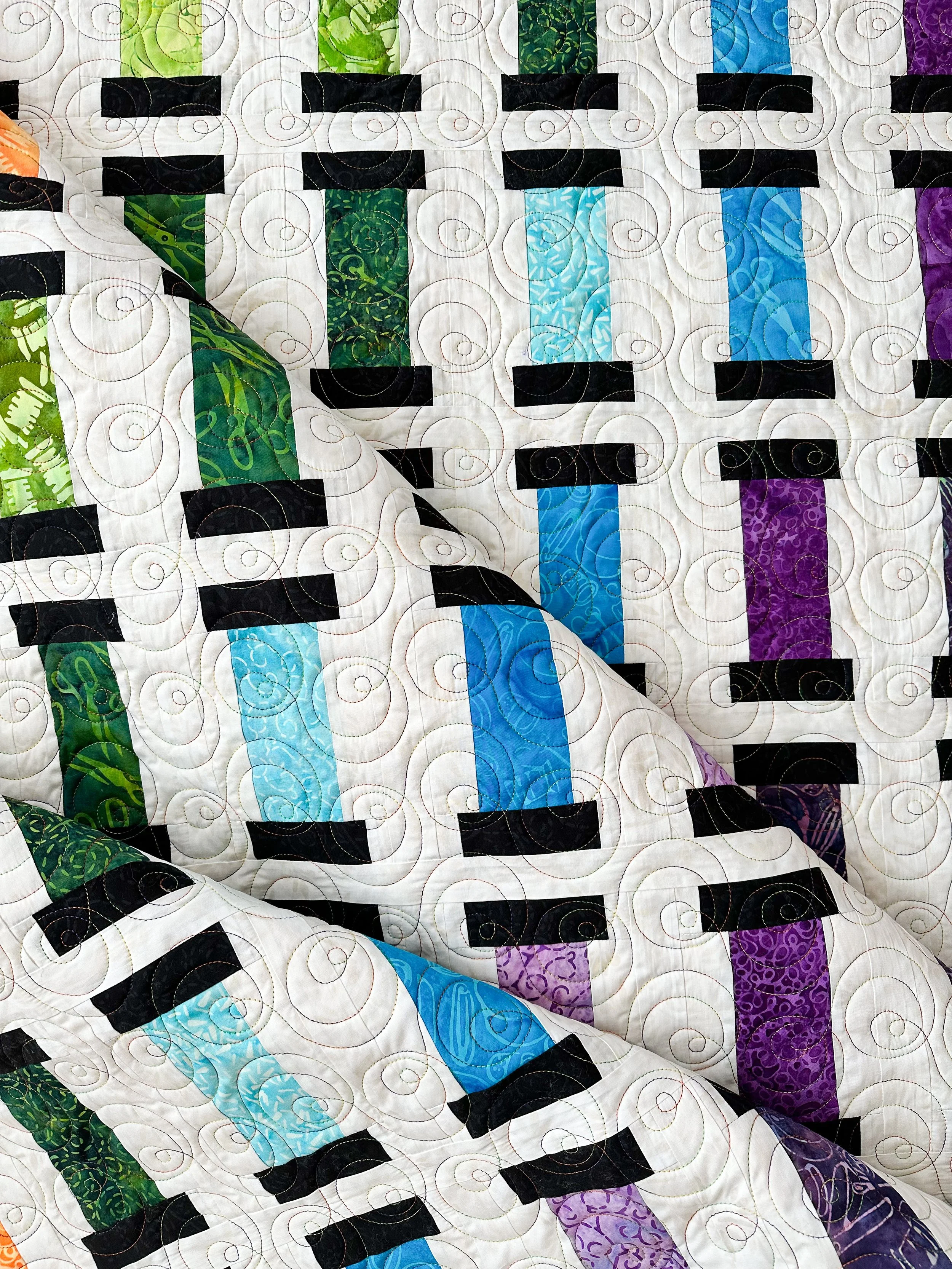Barbara told me the name is Rail Fence, but I wasnβt able to find a pattern. She saw the quilt and just made it. If you know of a pattern, please let me know and I will share it here.