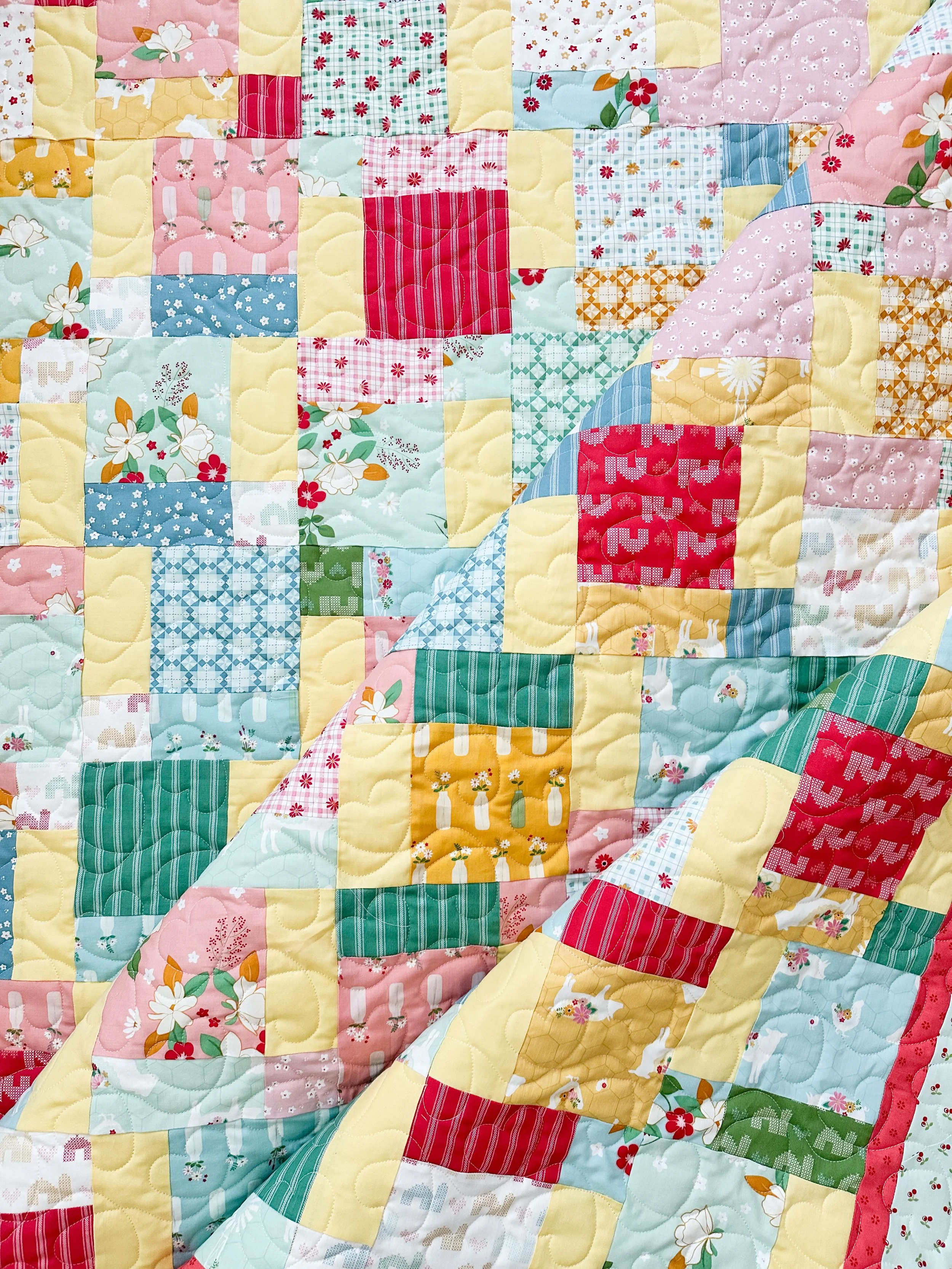 How darling are these fabrics?!?! Itβs quilt patterns like these that let you show off the beautiful prints in the fabrics. These ones are so sweet!