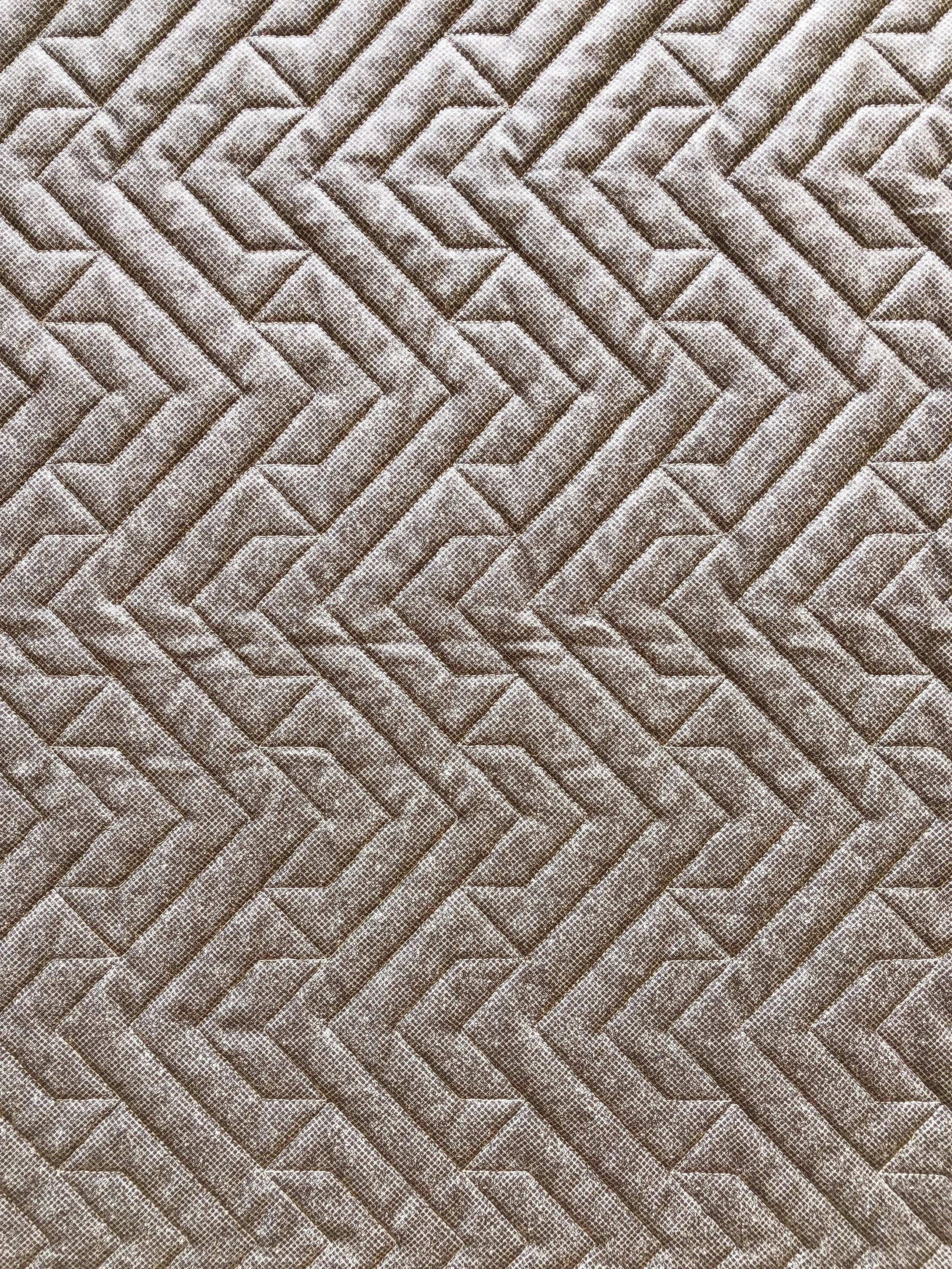 I love how simple lines can create such a fun texture. I like Southwest quilted at a 5” height, and there is no backtracking. It’s one of the many quilting designs that I offer in my shop. Southwest is a unique take on a chevron…however, it actually has more of an arrow texture to me…hence the Southwest name.
