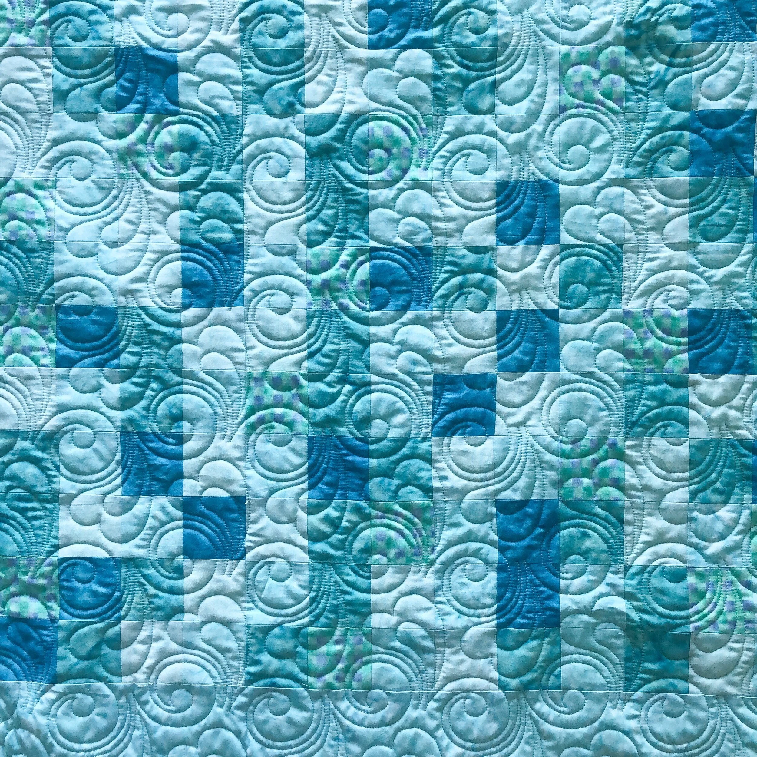I used 8020 cotton poly blend batting, and an aqua thread.