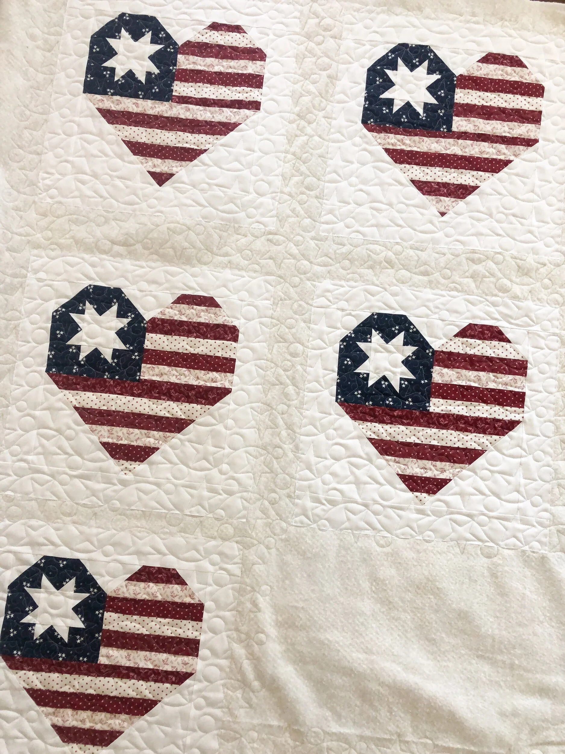 These super cute “I Heart America” pillows were made by Barbara. The pattern is free and available on Pretty Little Quilts blog from back in 2016.