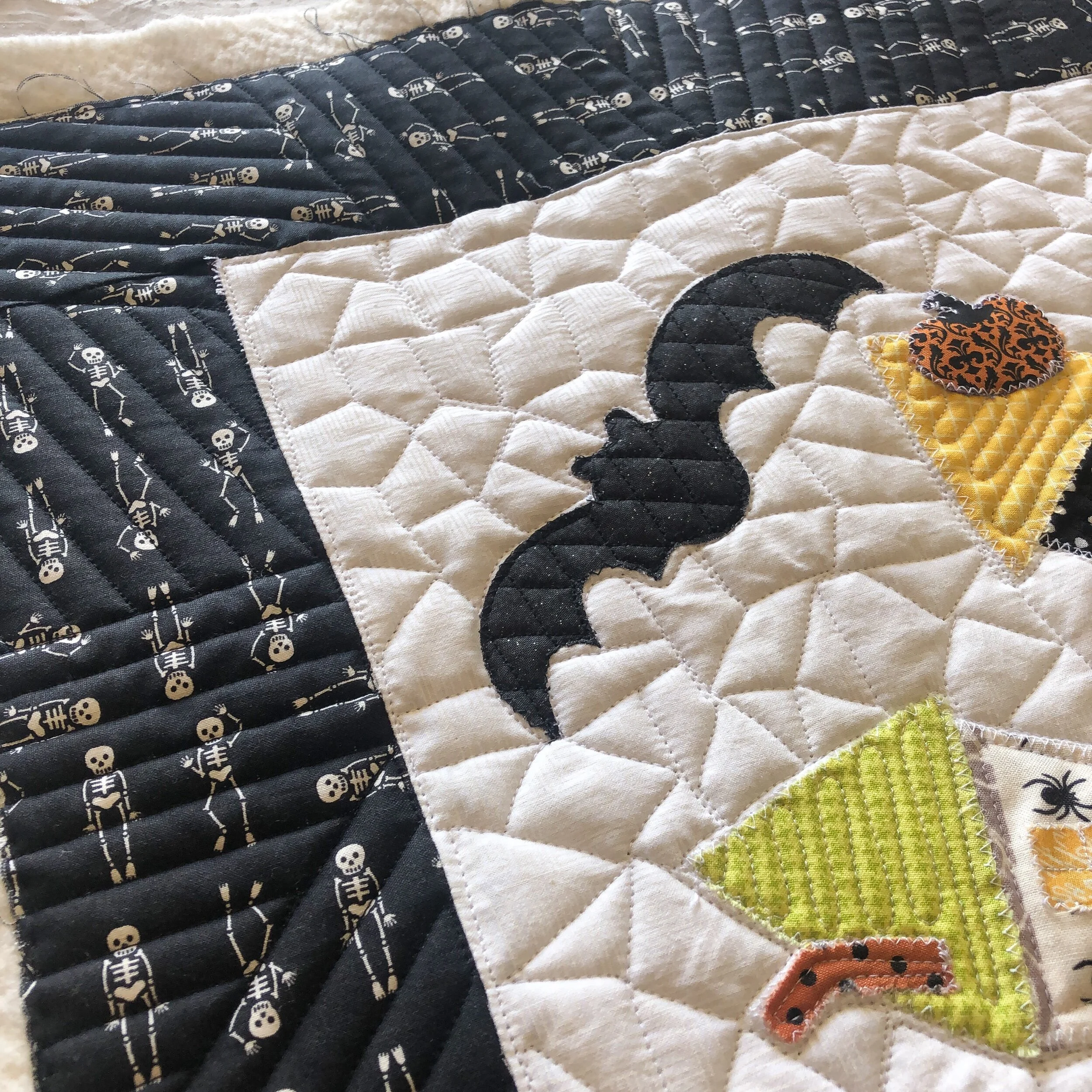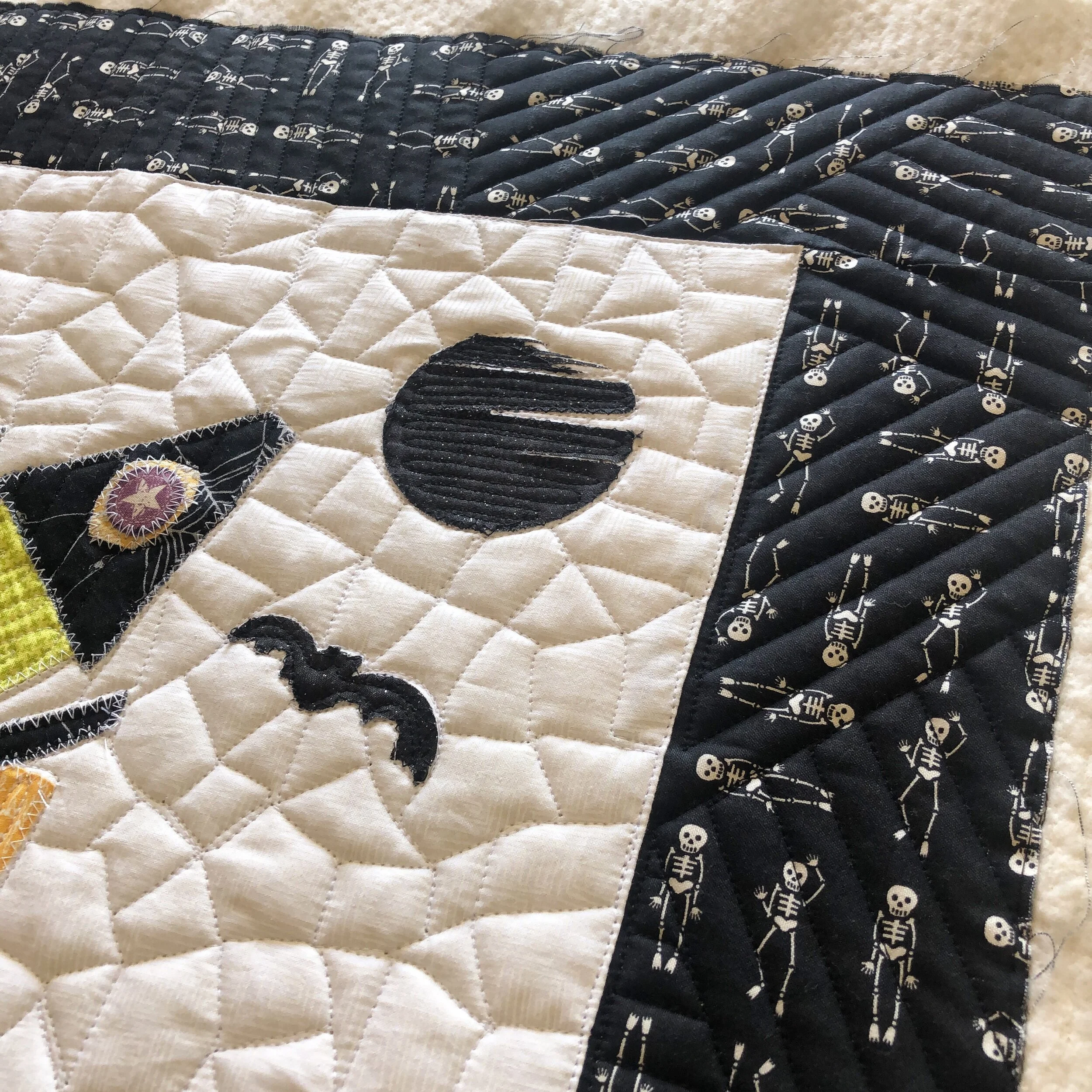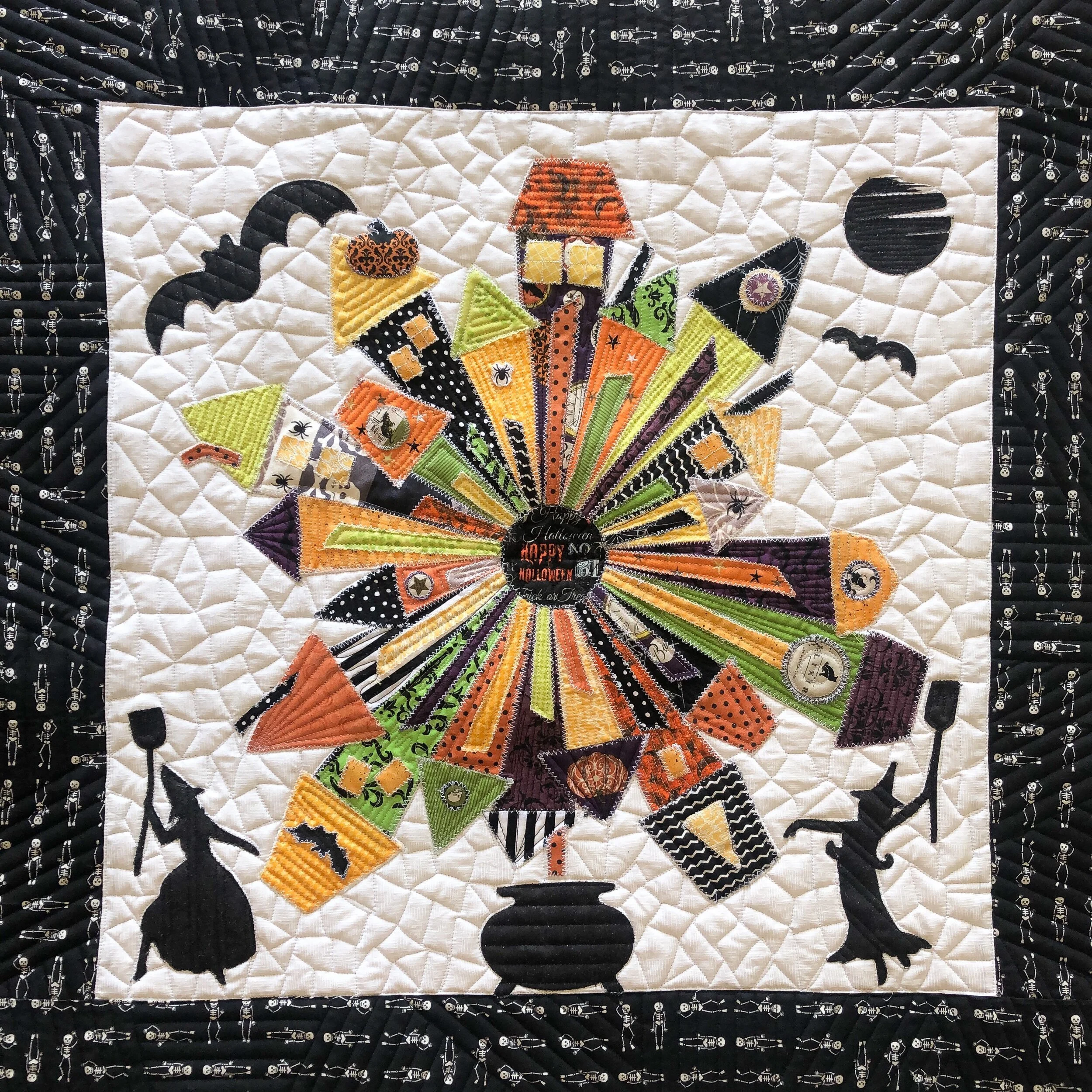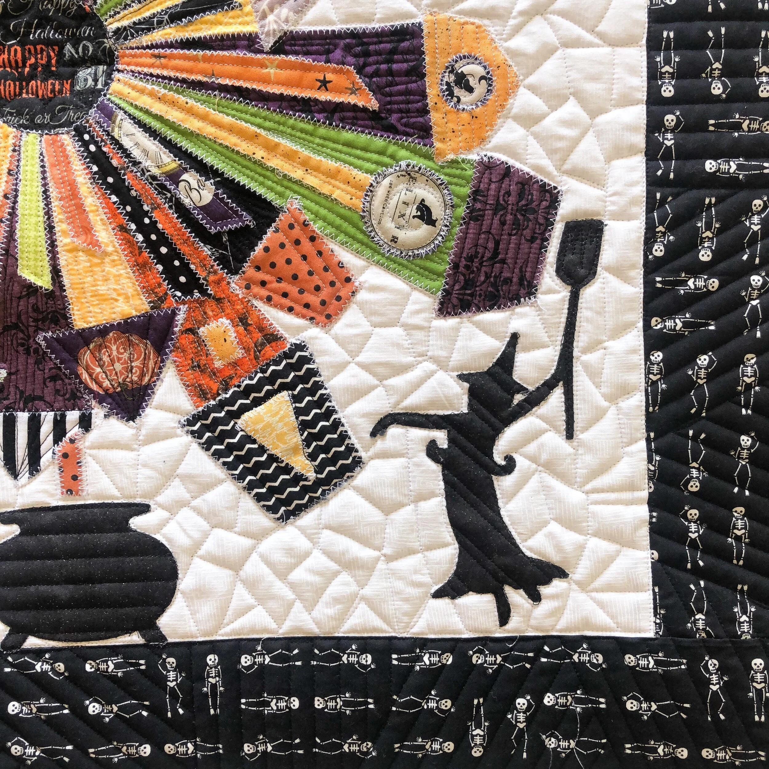 You can see the cauldron has a 1/2” horizontal line? And the witches are quilted with a pinstripe. It works great to have a variety of different lines, because the scales are all a little different.