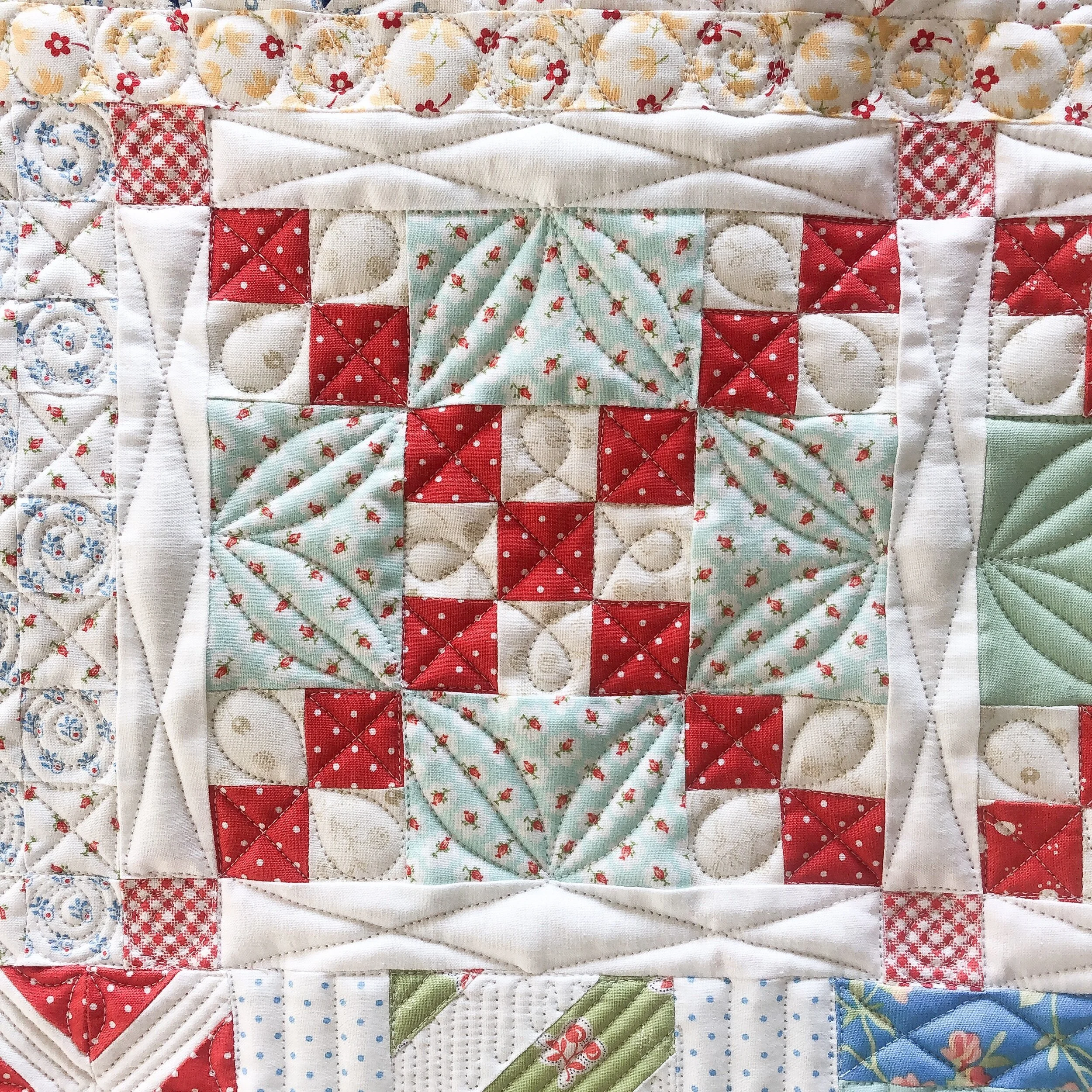 Now, I want to share with you some quilting in individual blocks. It’s all in the details.