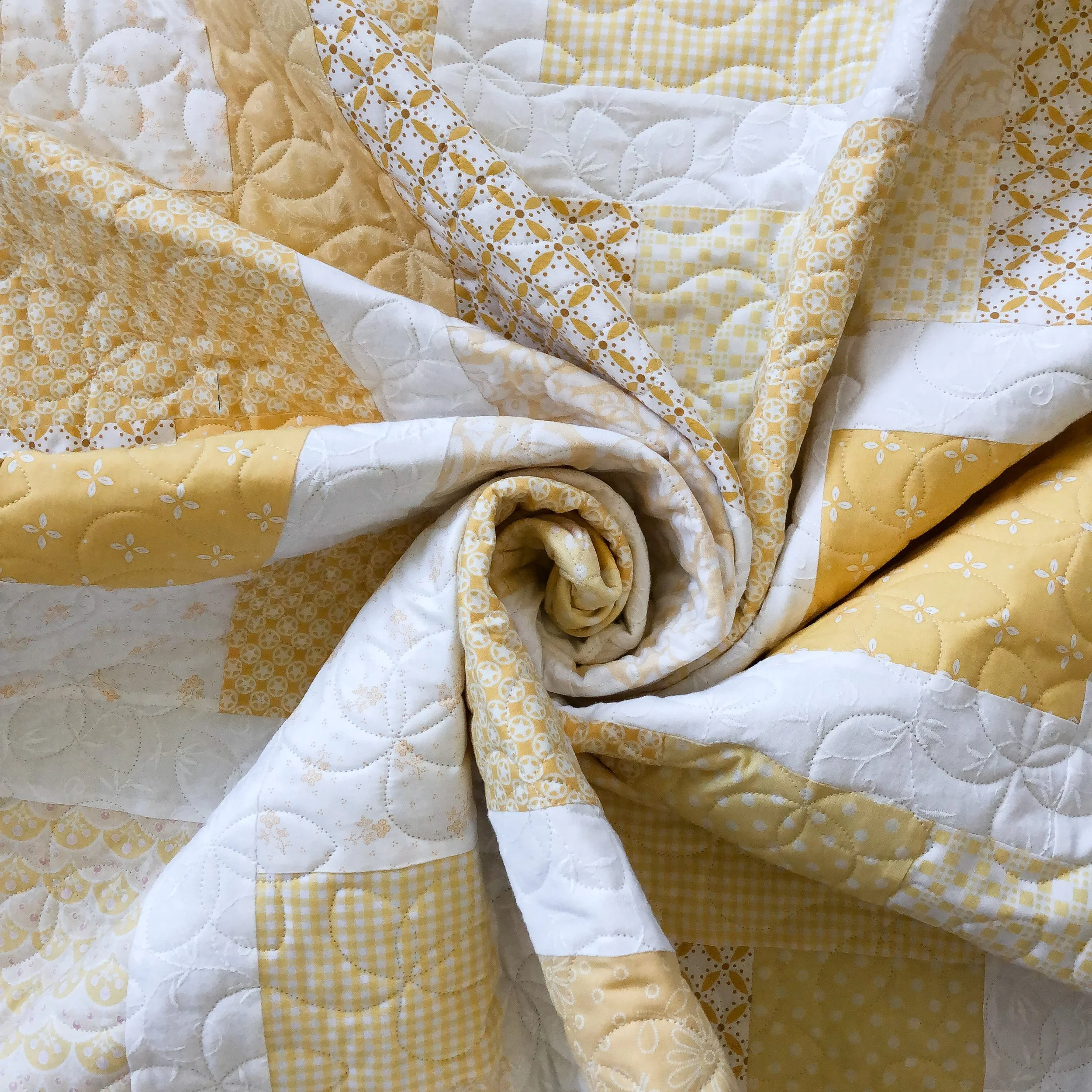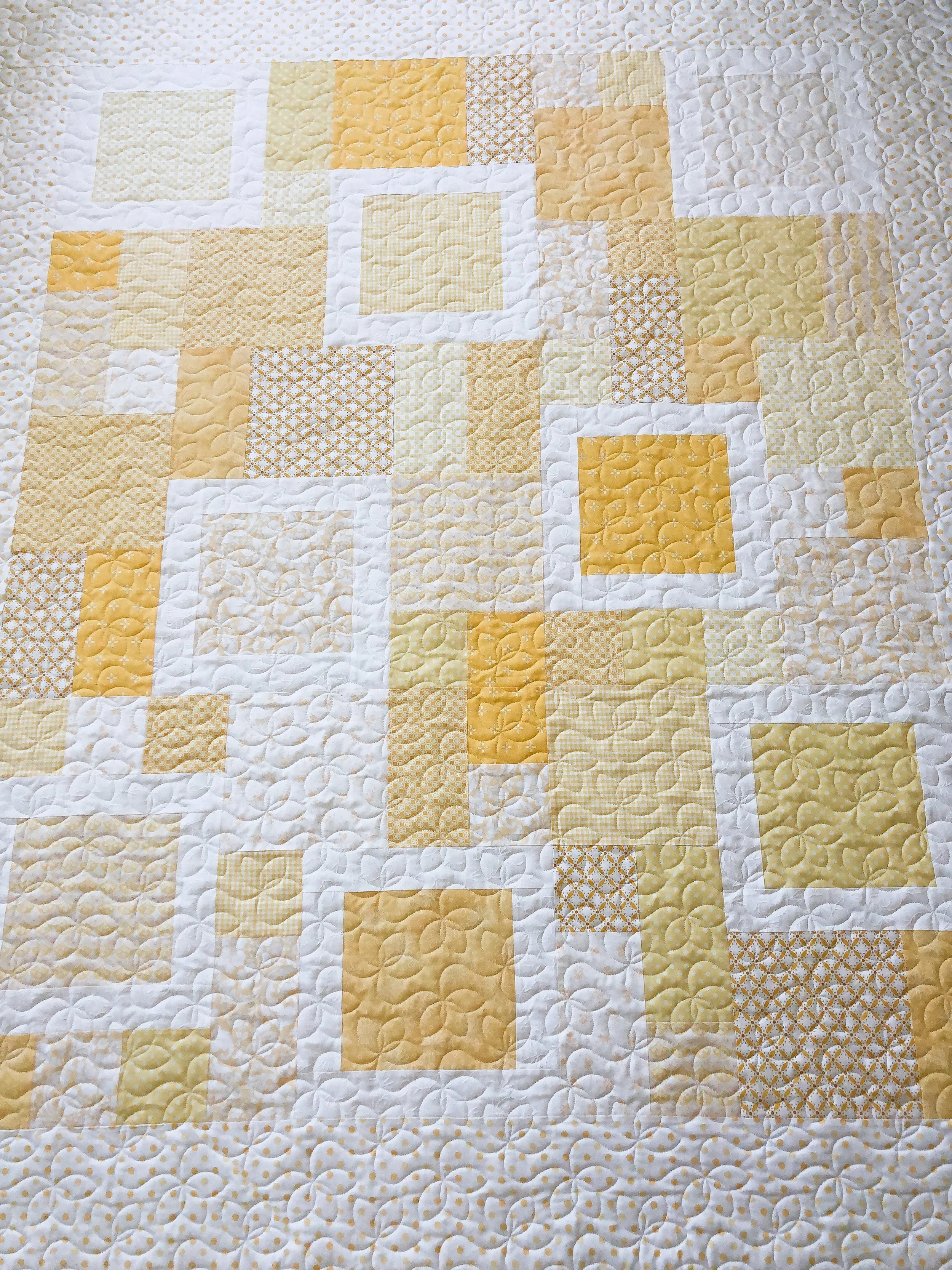 I have a very cheerful quilt to share with you. My friend Laurie made it with one of her favorite colors…yellow!