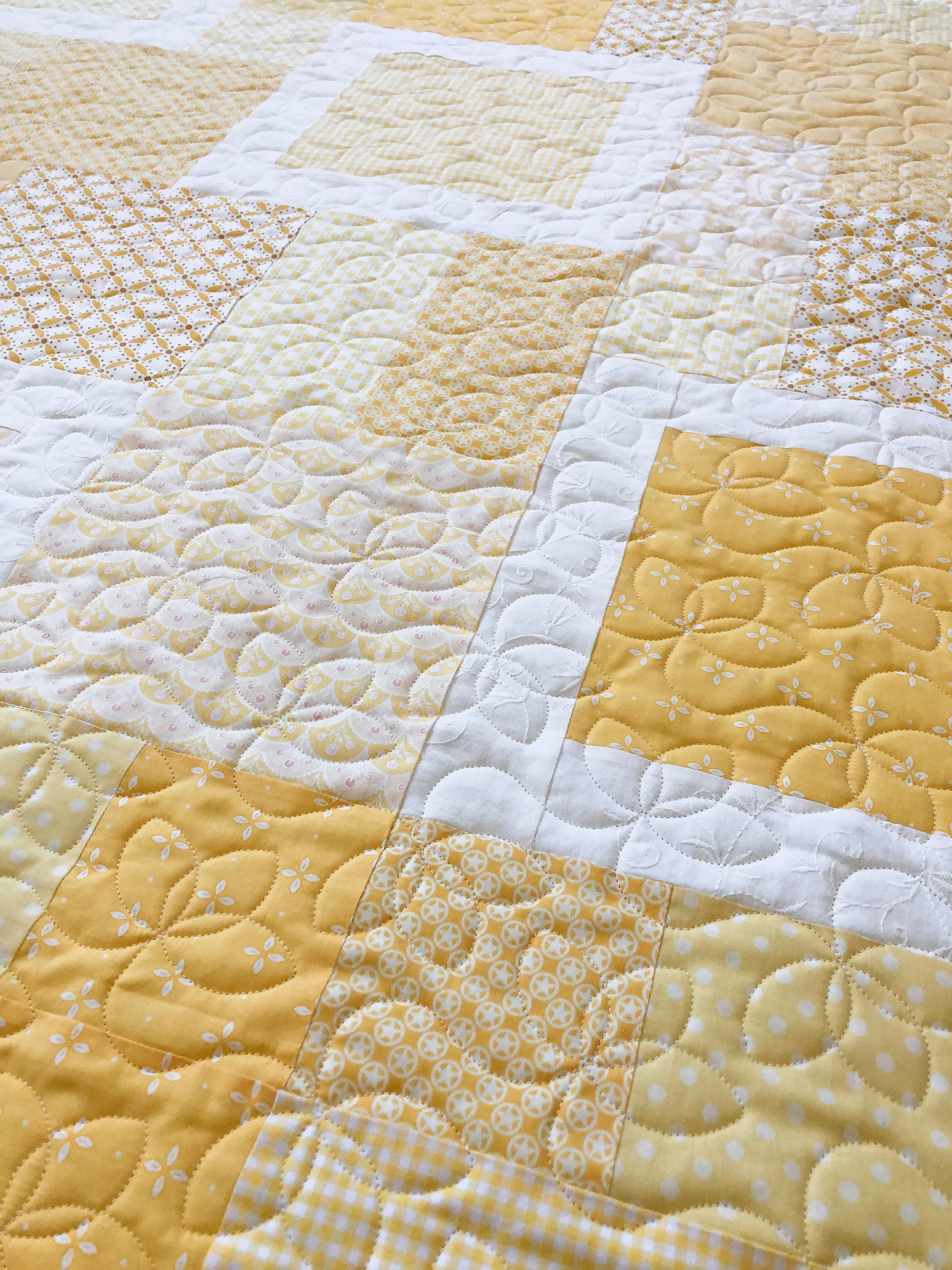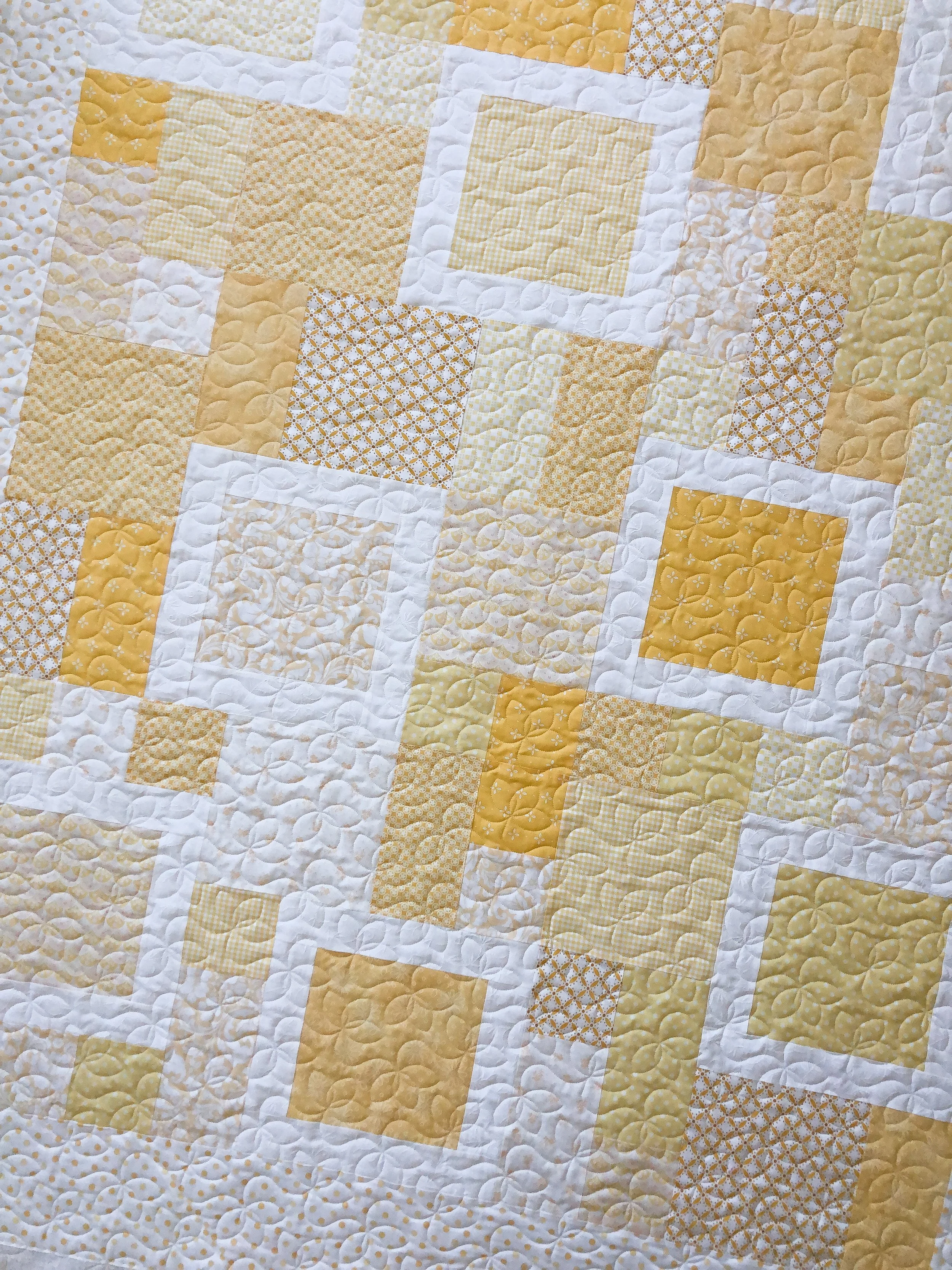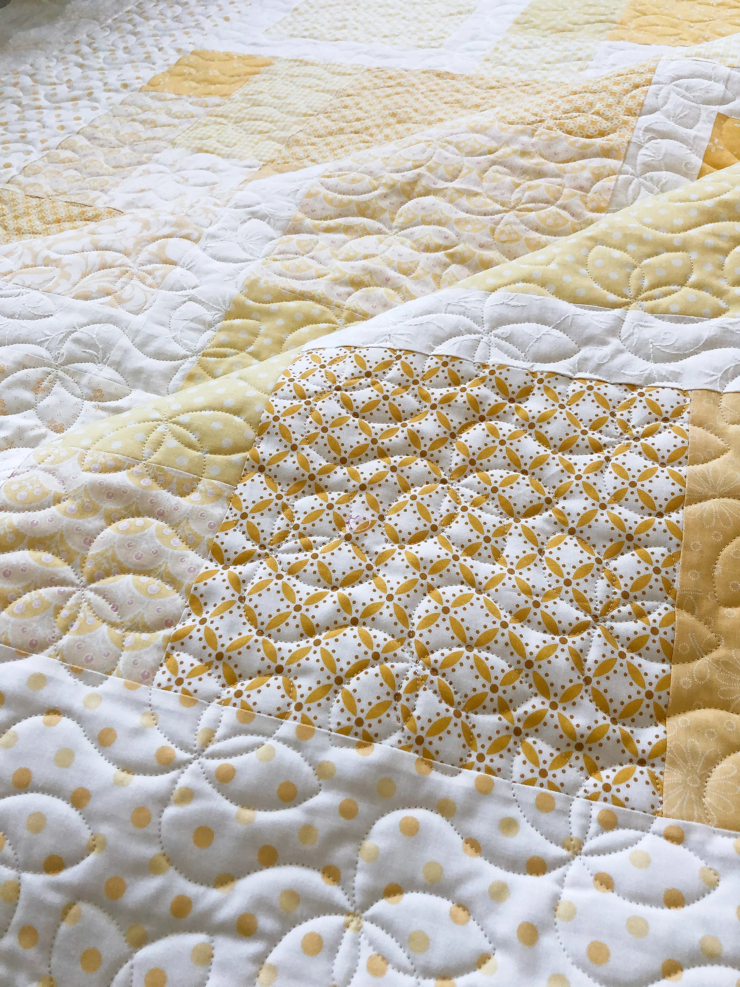I used my new favorite Triplet panto, designed by my good friend Shelly’s mom from Ma Tante Quilting. It’s a beautiful stitch out and look at how cheerful it is. It’s the perfect texture for this quilt.