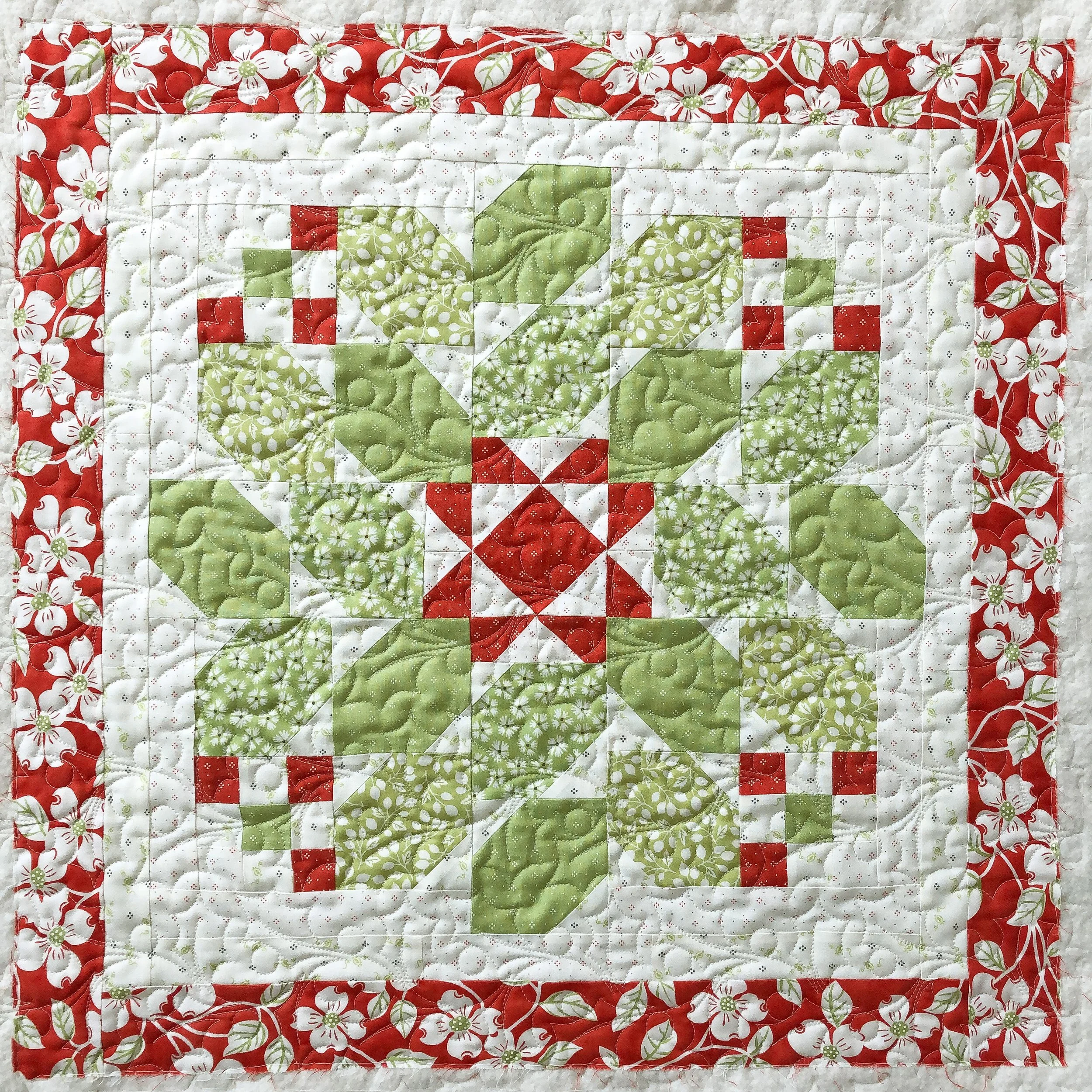 I have a quick little quilt to share with you…Barbara’s Holly Berries mini quilt. The pattern and fabrics are by Joanna from Fig Tree & Co.