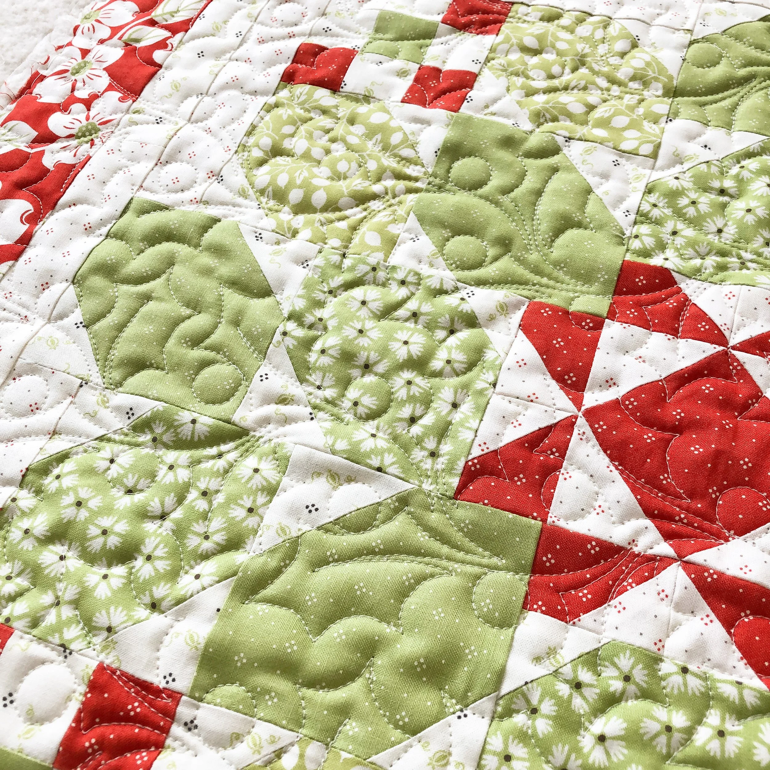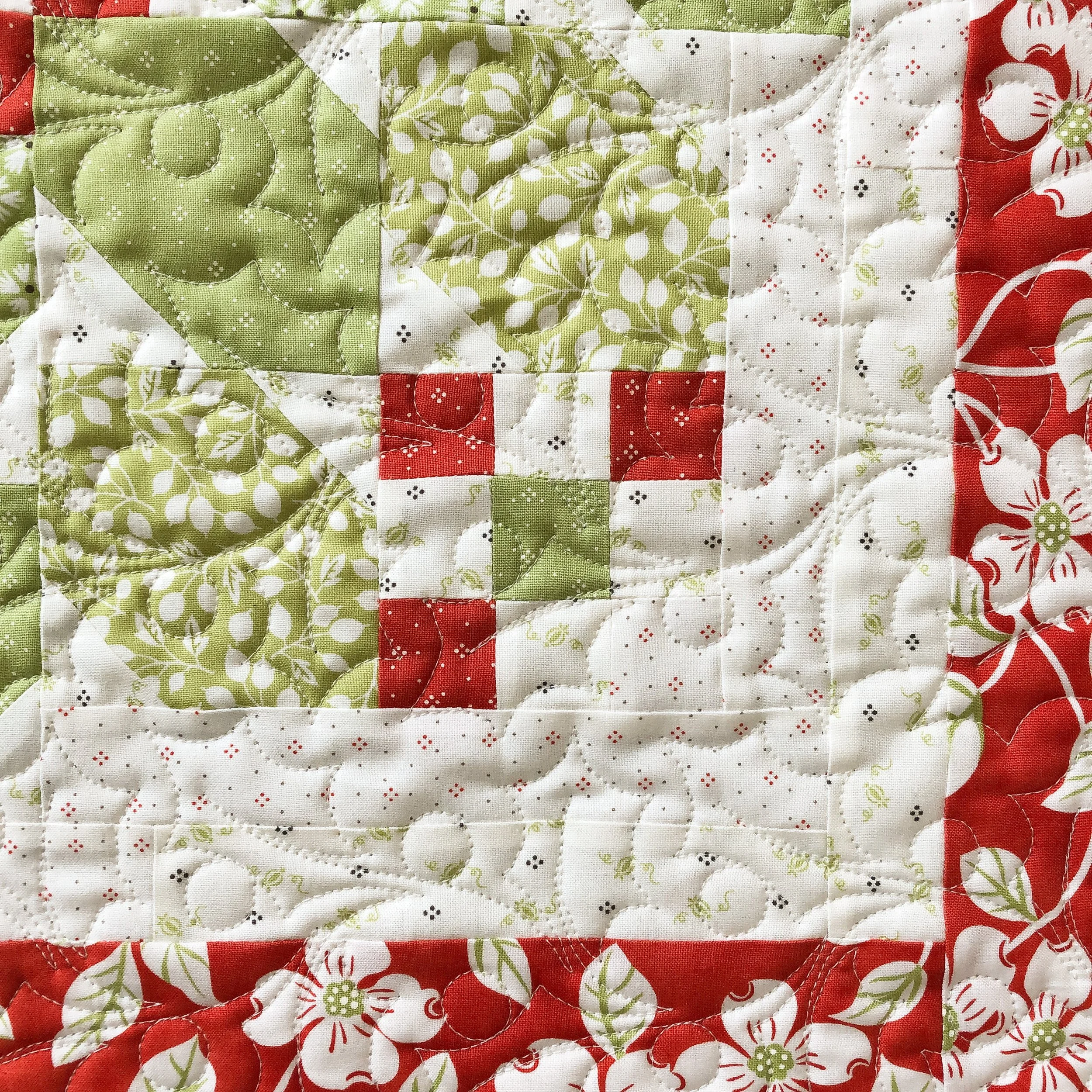 I used the Feliz Navidad border by Patricia Ritter and Natalie Gorman from Urban Elementz to quilt it. It’s such a fun simple design!! If you’re looking for a holly berry design, definitely go get this one.