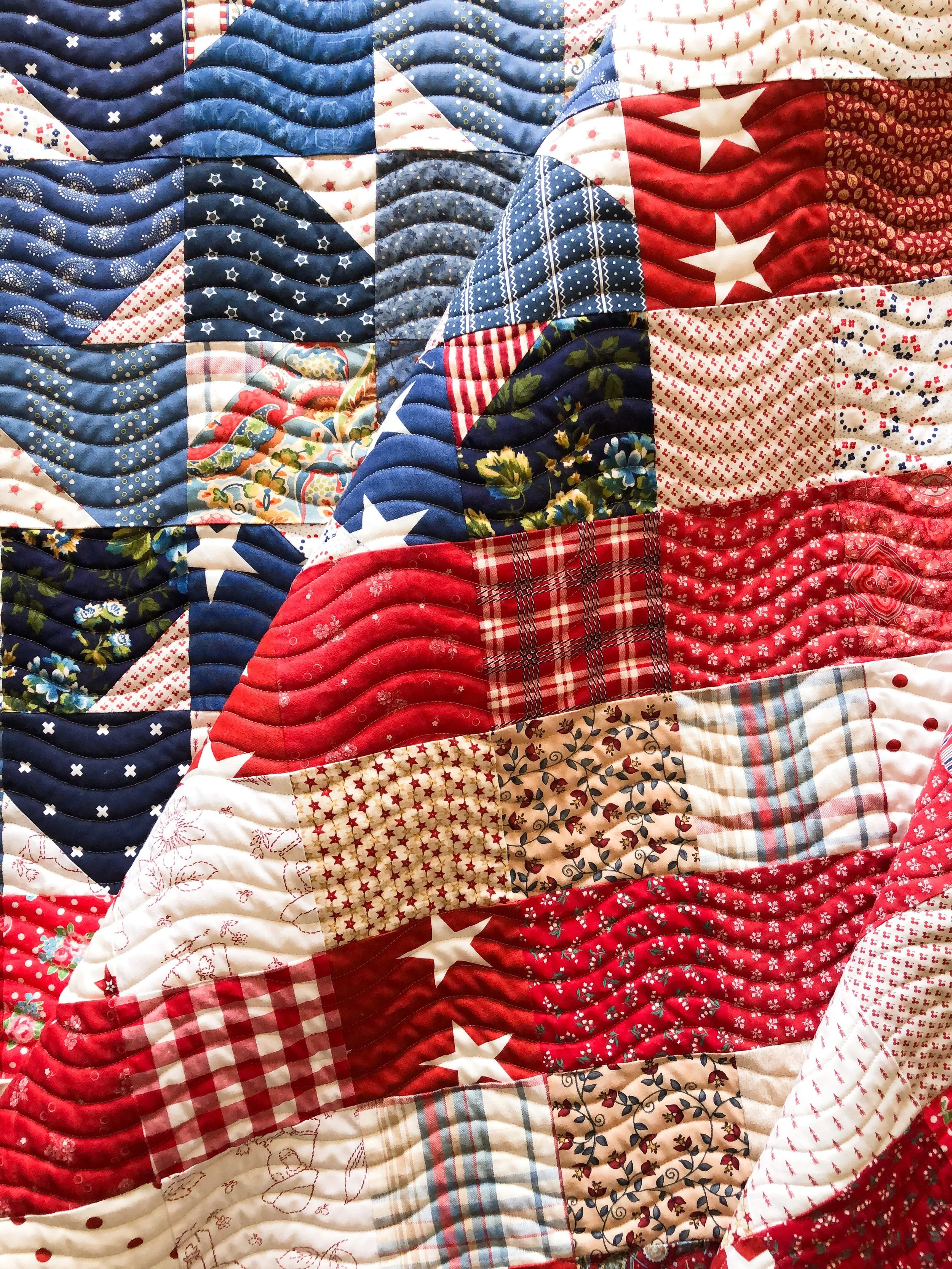 Laurie made this Yankee Doodle Dandy Quilt for a friend. The pattern is by Holly from Maker Valley. It’s a great stash buster, if you have lots of navy, reds, and white/cream fabrics.