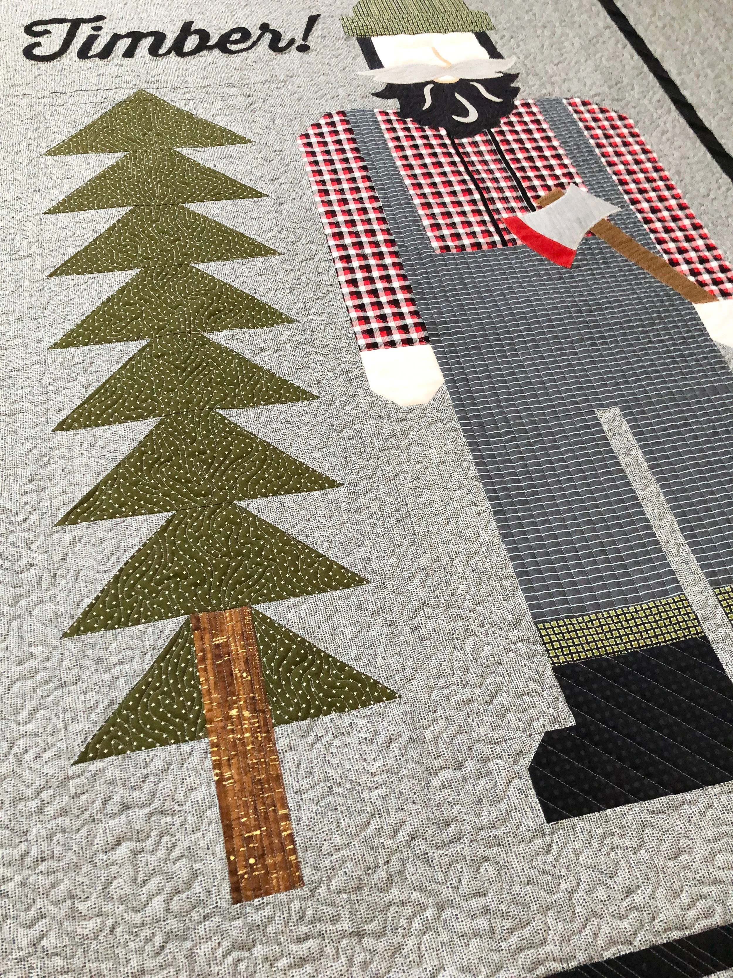 Kathy made this fun Timber lumberjack quilt for her grandson. The pattern is by Buttermilk Basin.