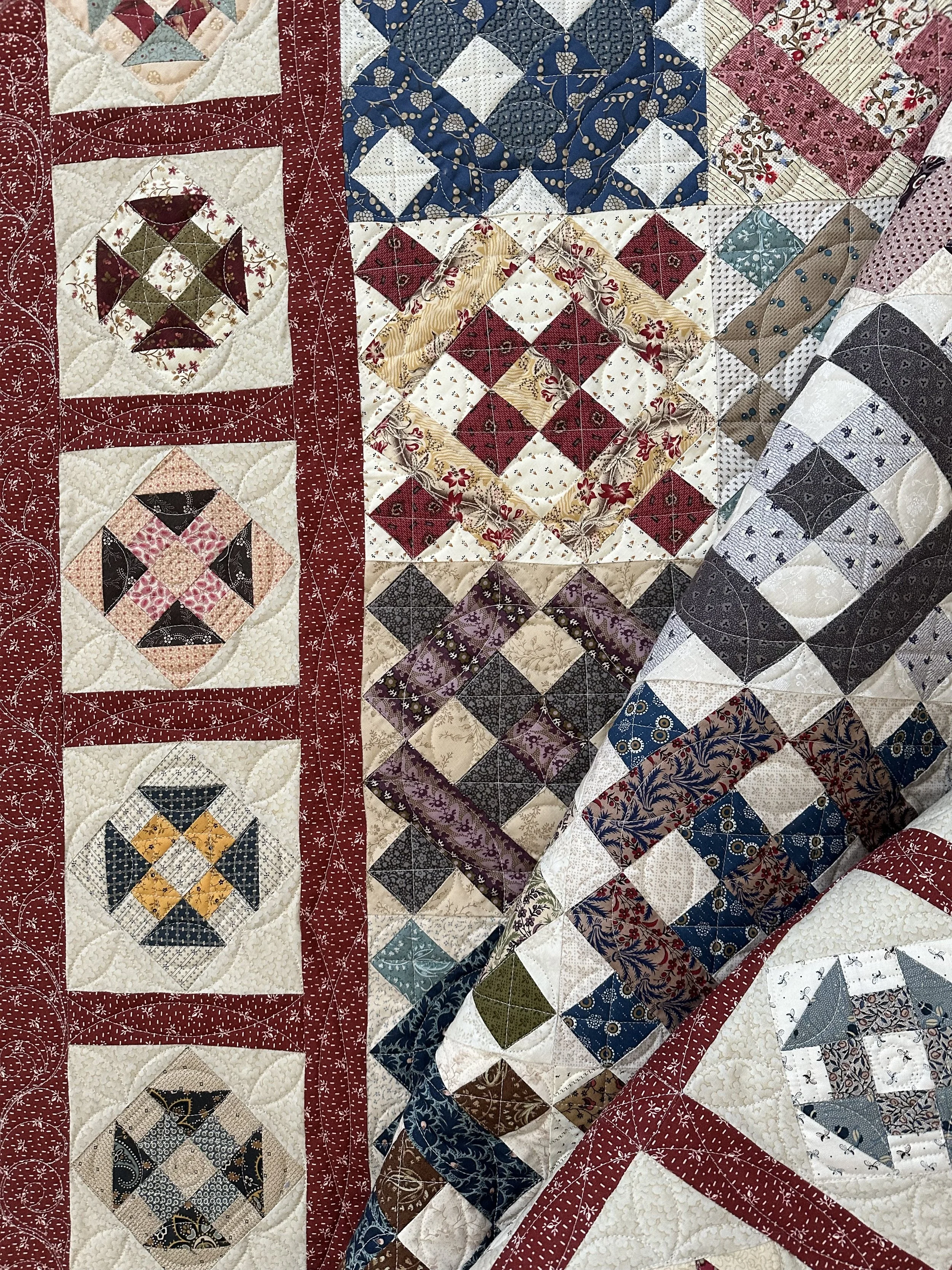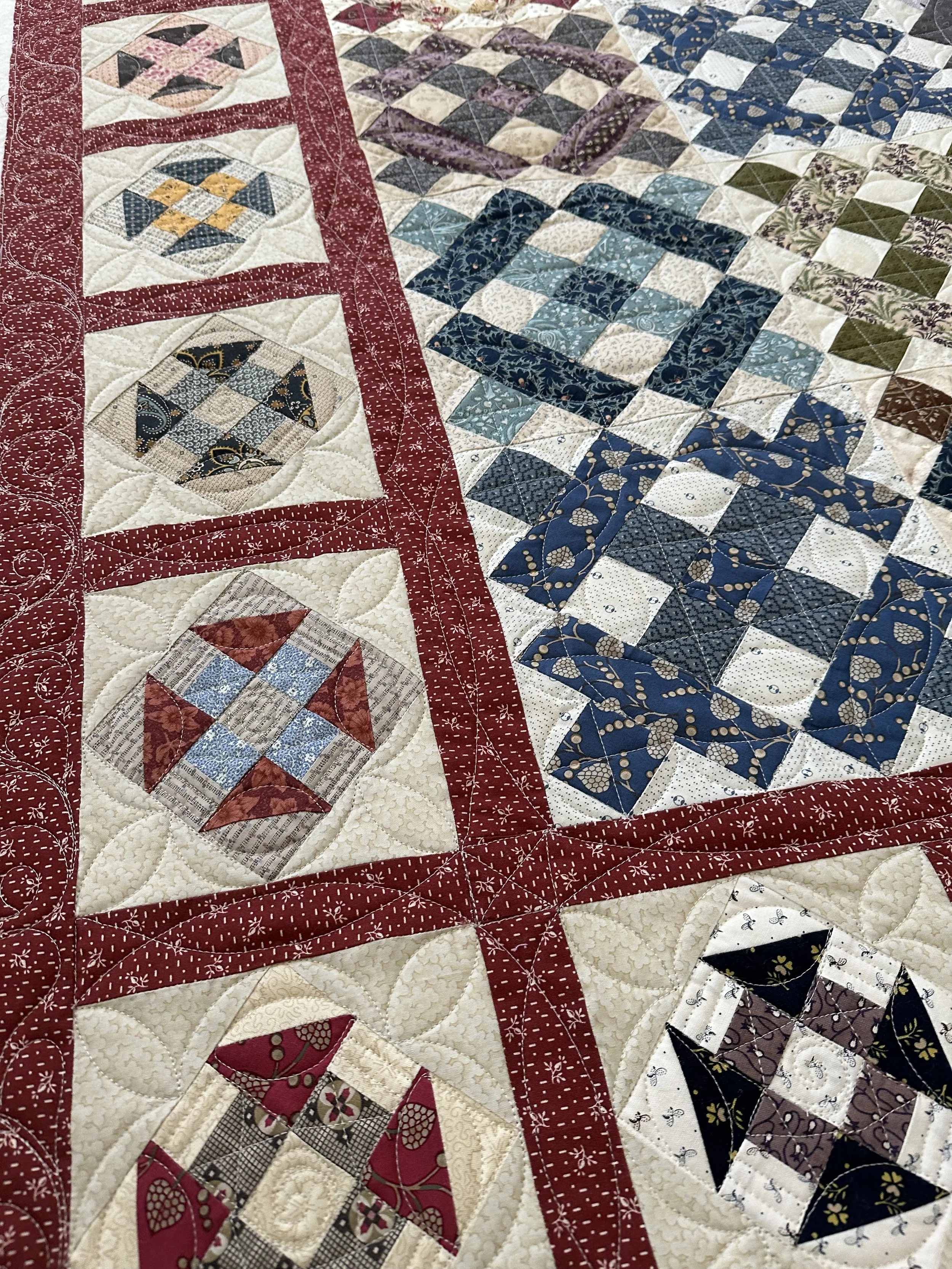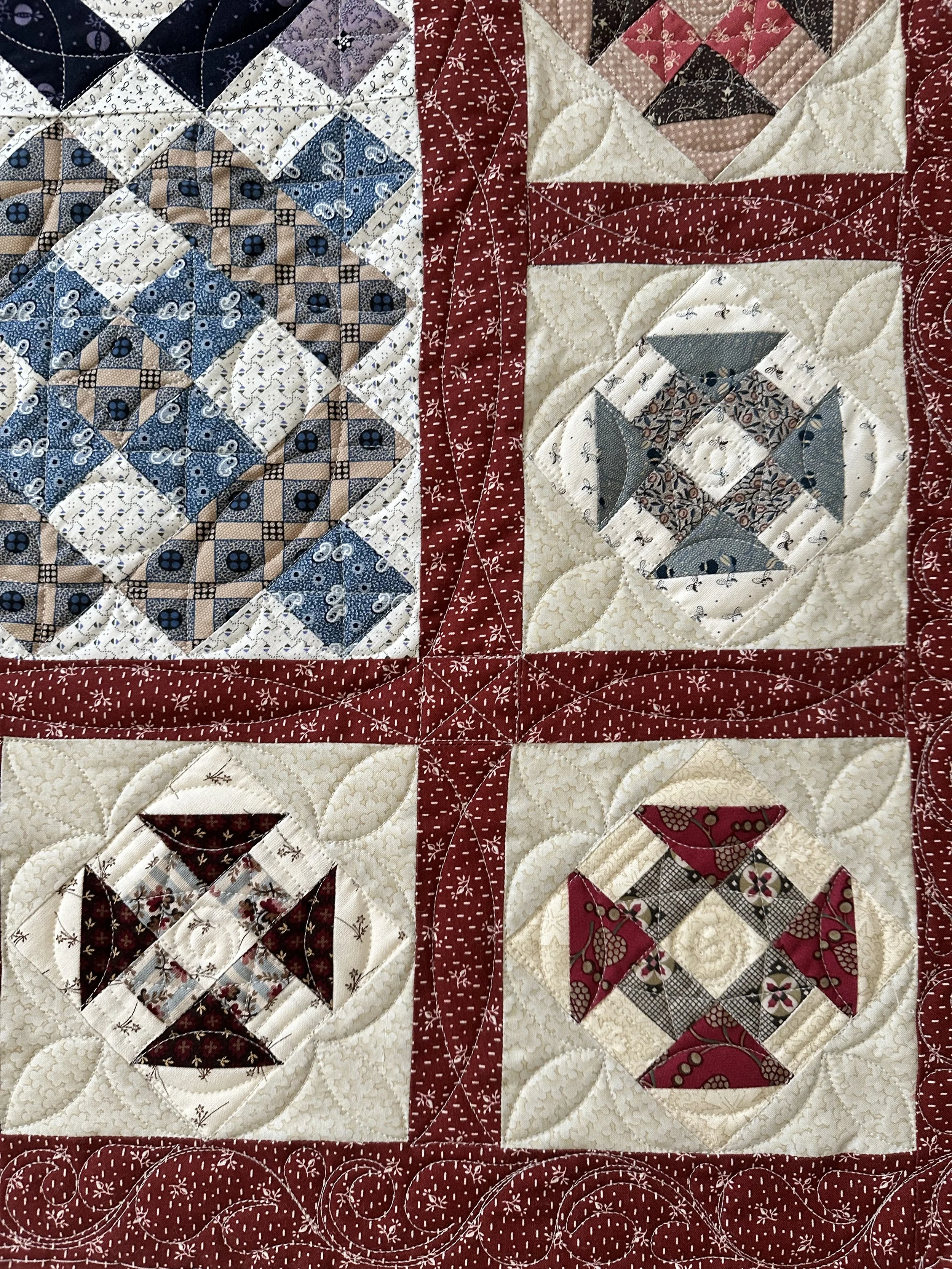 Members of her guild decide whether or not they want to submit a block or two, and then everyone who made a block has a chance to win all of the blocks. Laurie was the lucky winner twice!! This is something that I think they do fairly often, and she’s had both of these sets of blocks for a while, and I think it’s amazing how well the blocks work together.