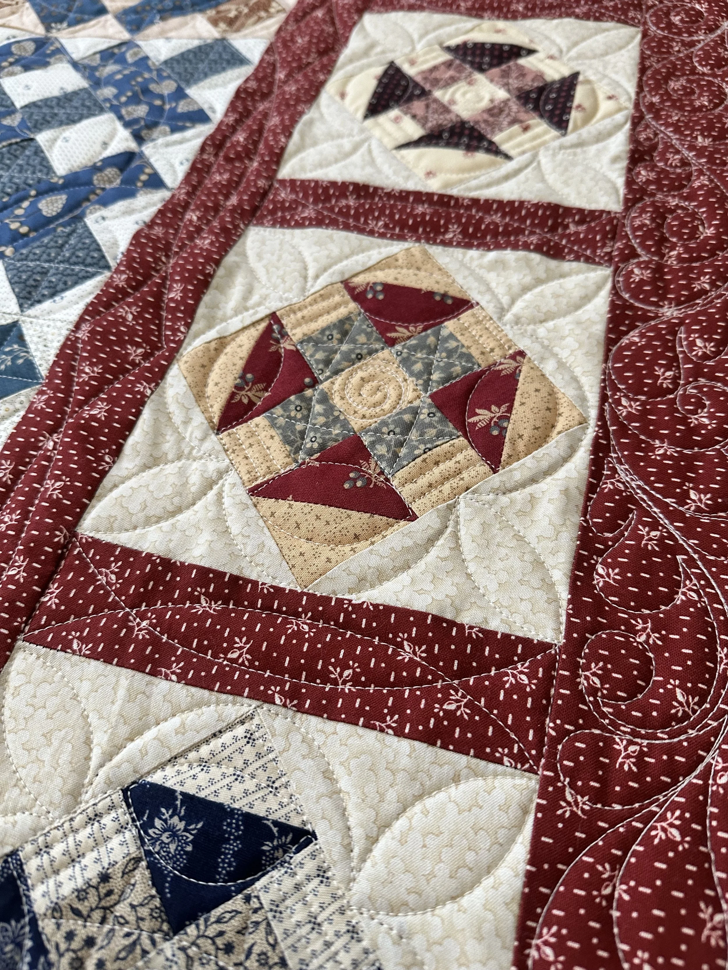 My biggest goal with custom quilting is to create an overall cohesive look with the variety of different designs that I do, and I really love how everything came together on this quilt.