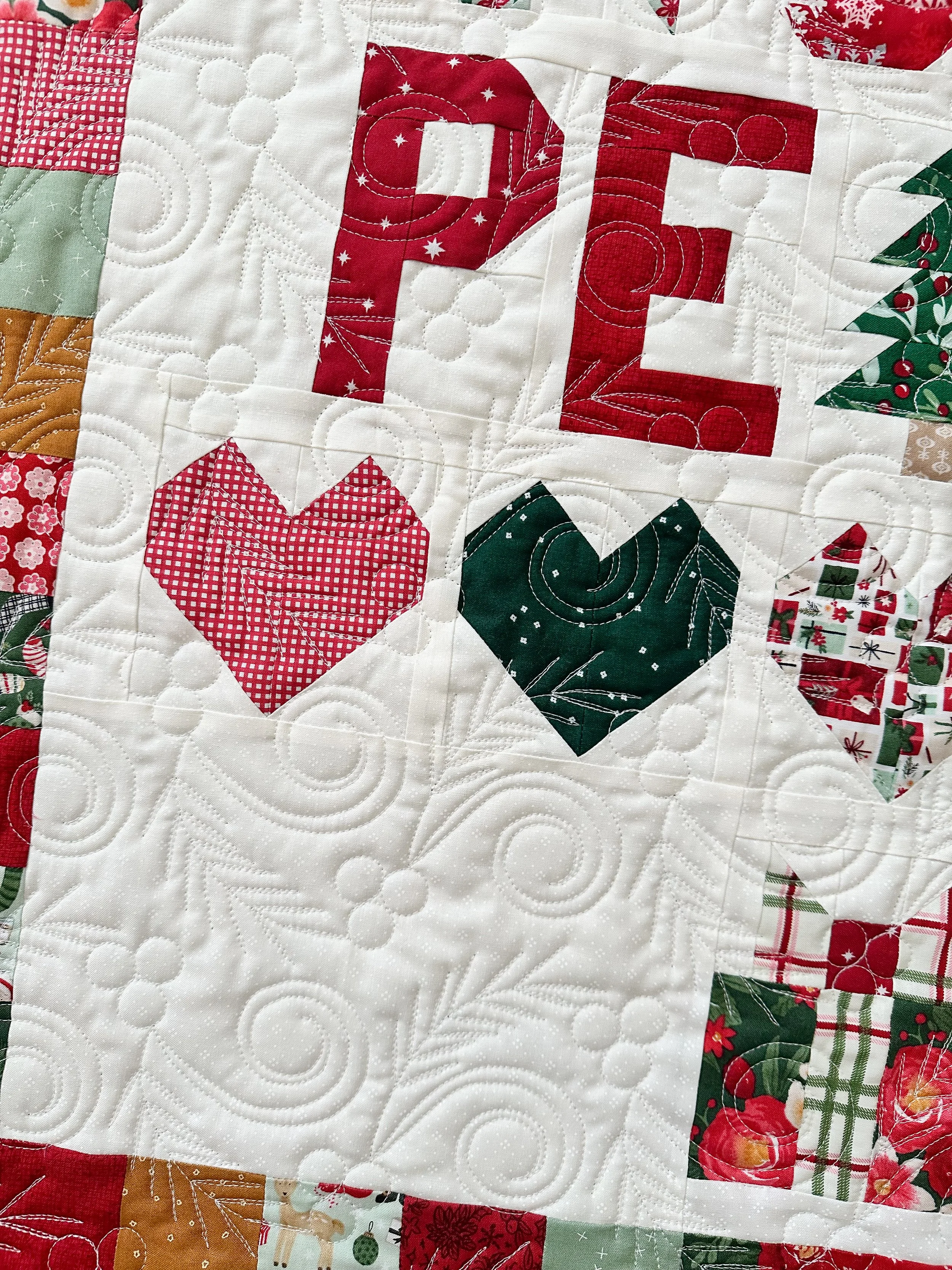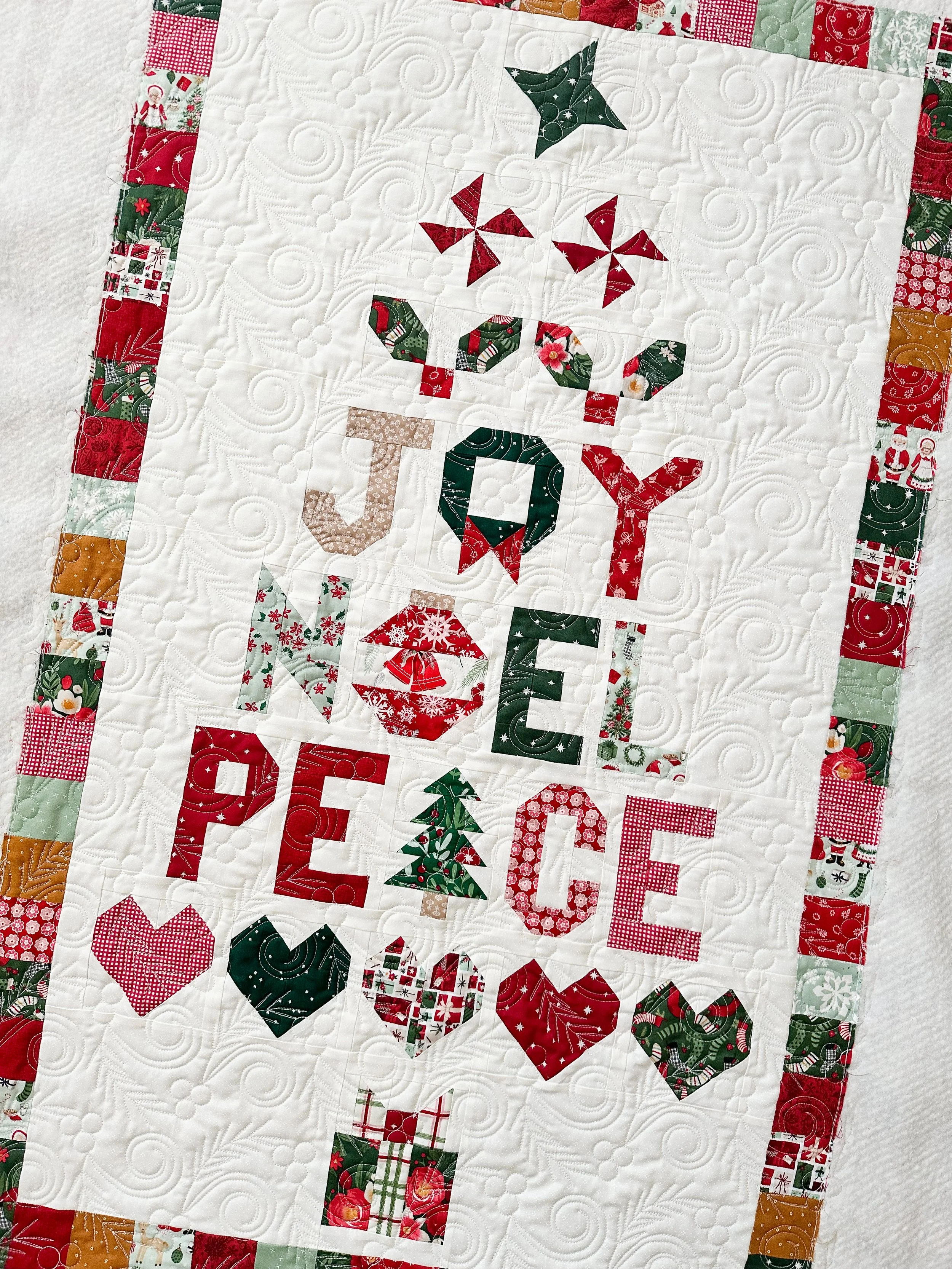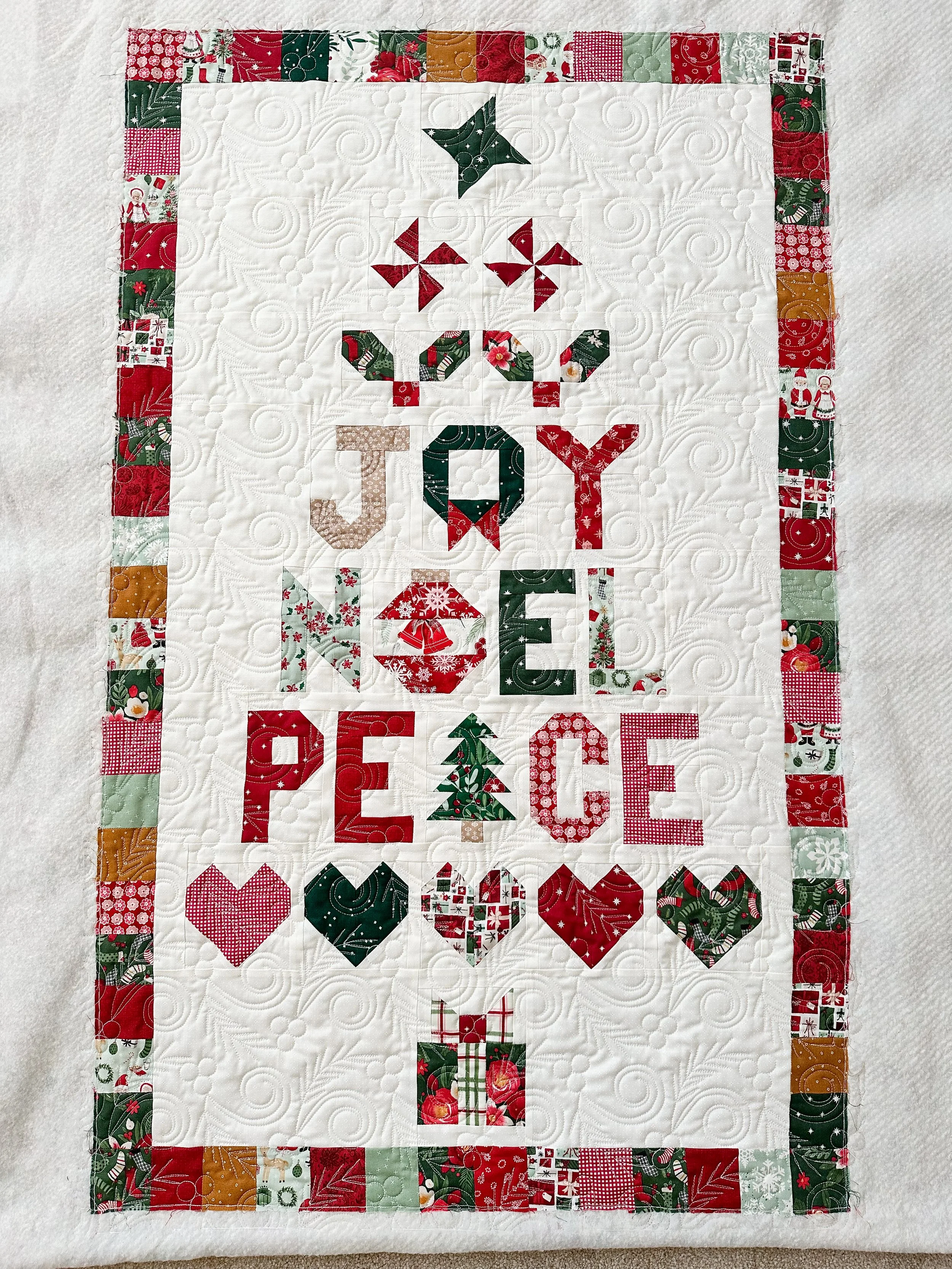The mini size makes it ideal for decorating a small space, tabletop, or wall while still delivering big visual impact. If you’re looking for a holiday quilt pattern that celebrates peace, joy, and love, this one is it.