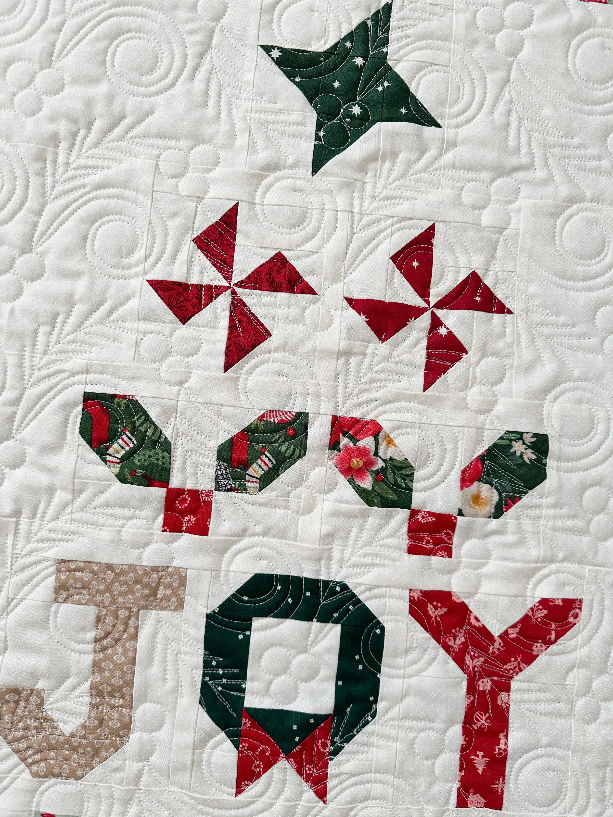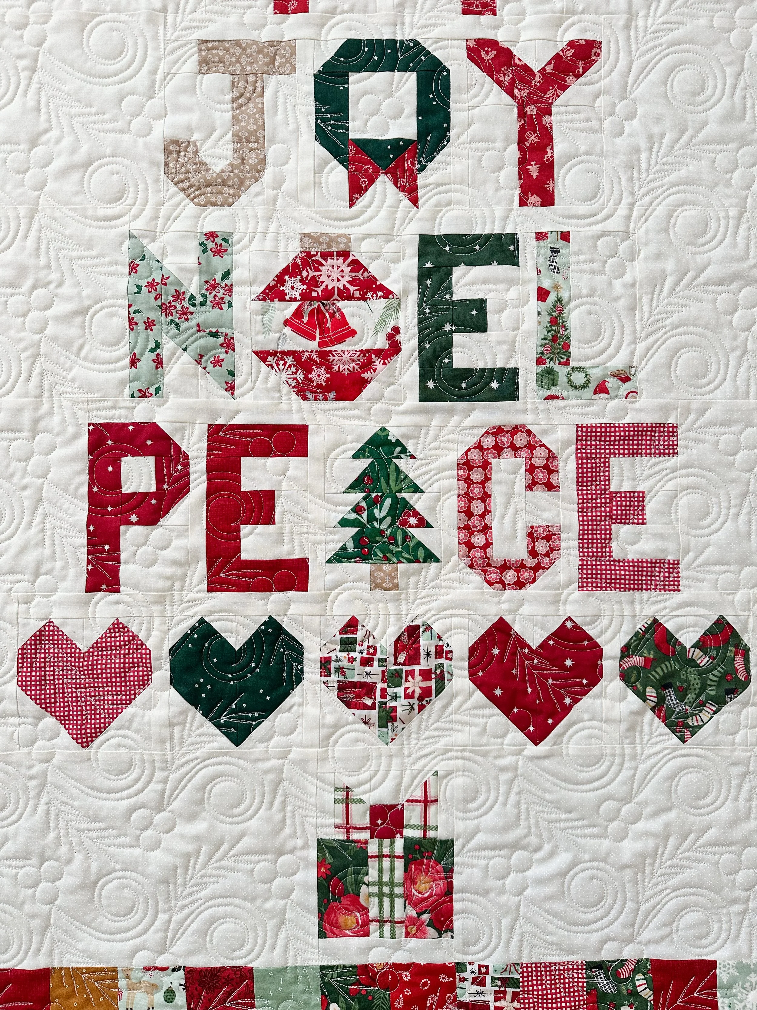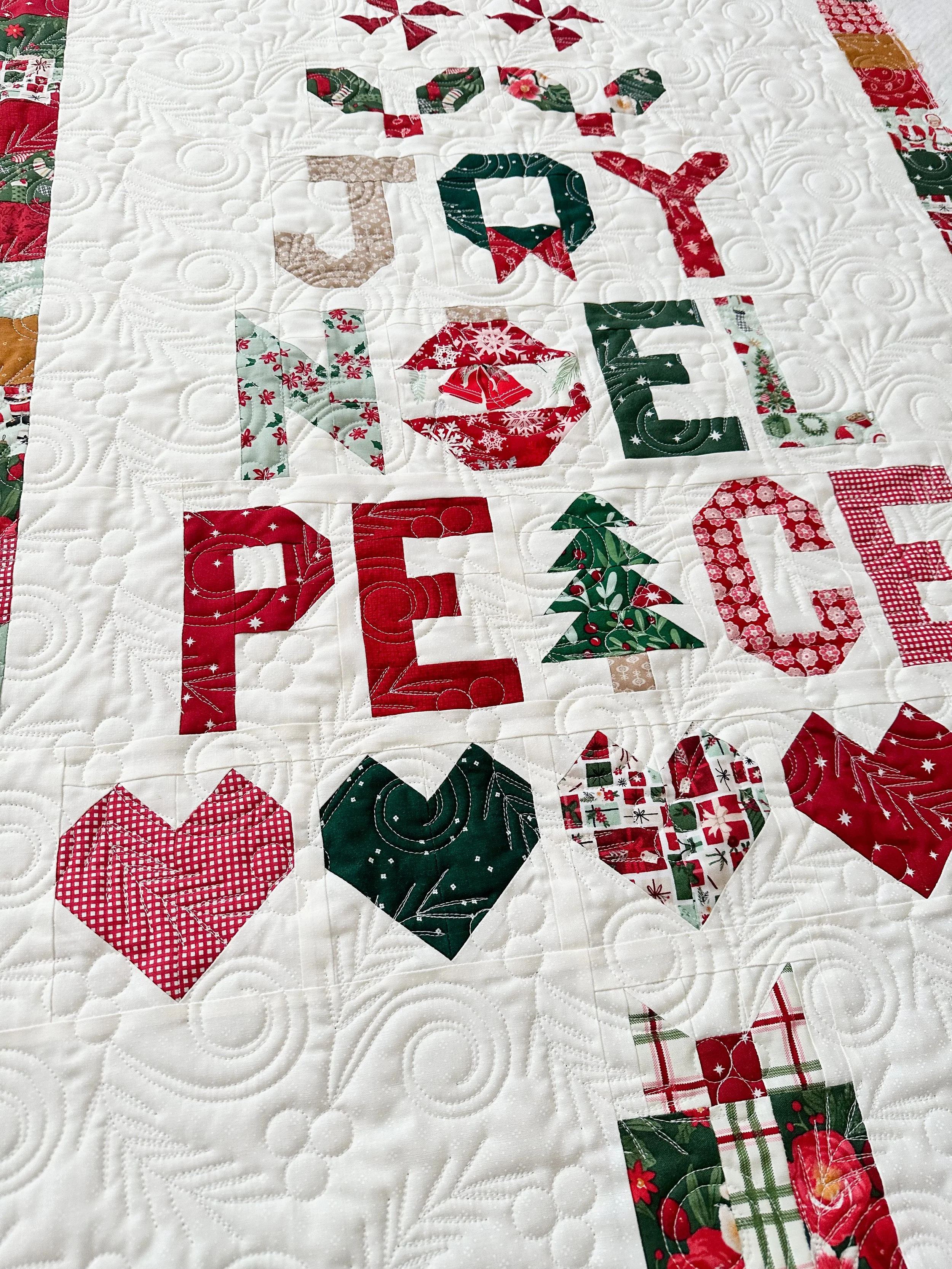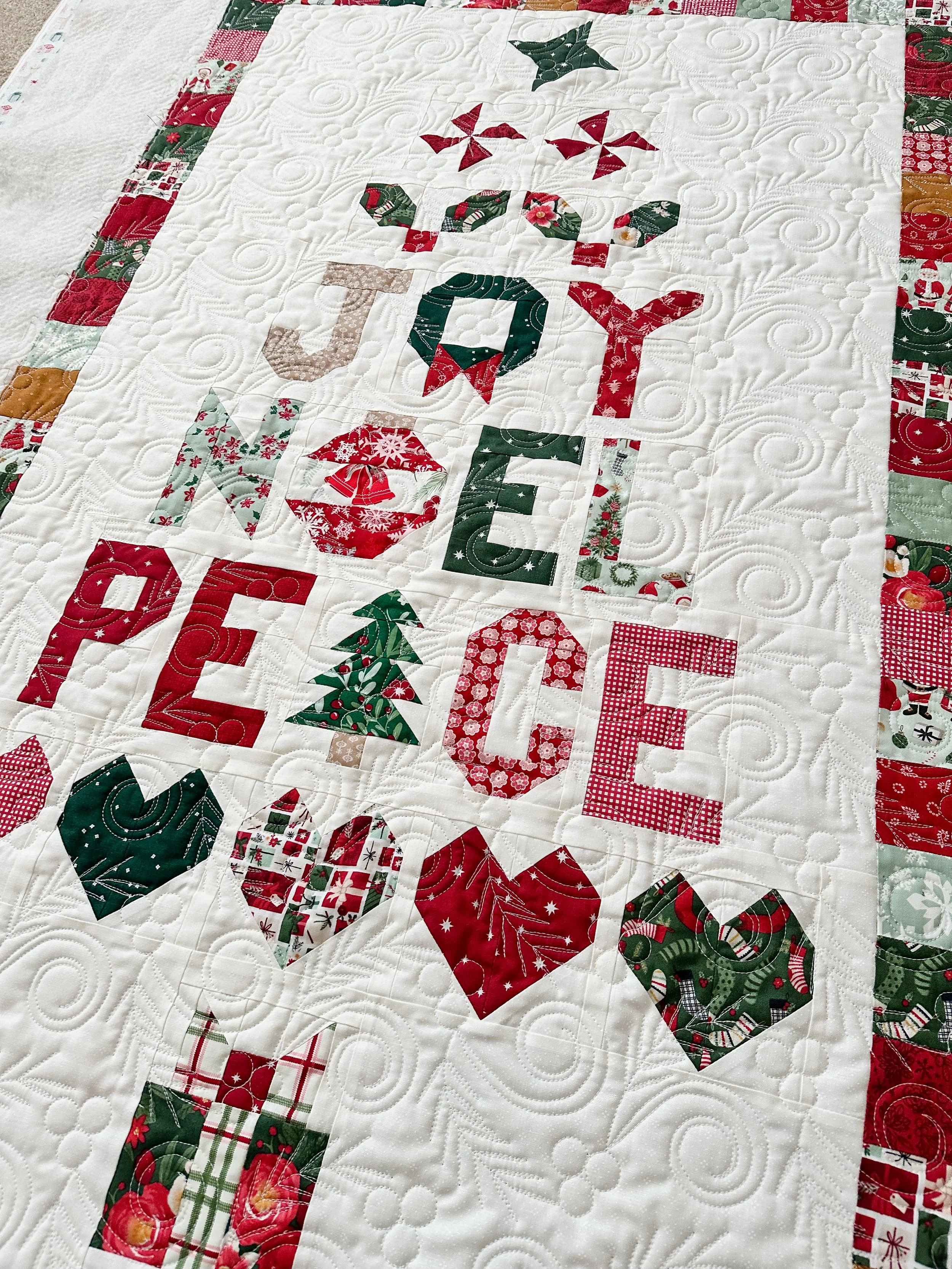 The mini size makes it ideal for decorating a small space, tabletop, or wall while still delivering big visual impact. If you’re looking for a holiday quilt pattern that celebrates peace, joy, and love, this one is it.