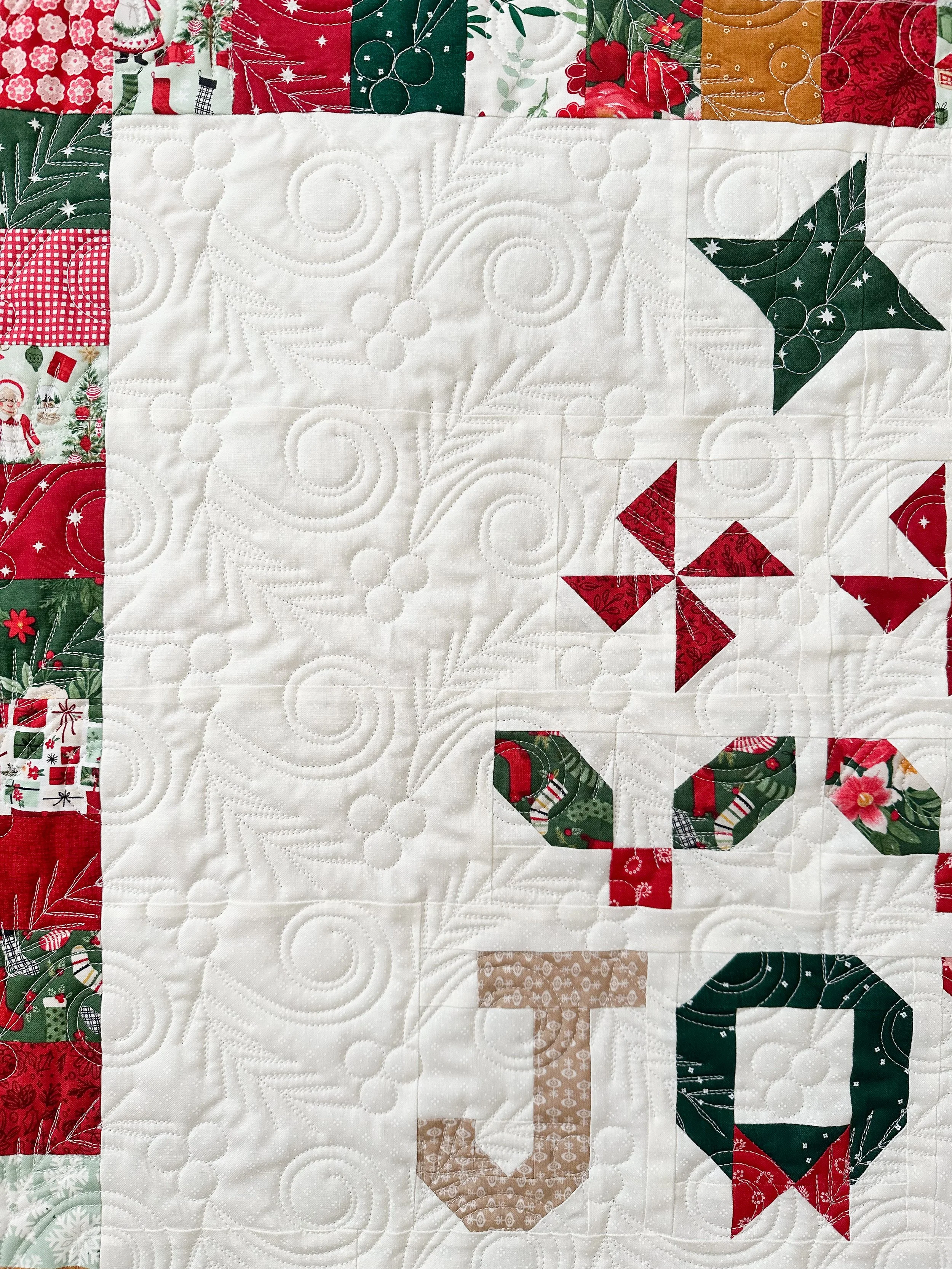 For the quilting design, Nancy chose the Christmas Garland pantograph by Molly from Lovely Threads. This flowing, festive edge to edge quilting design adds beautiful texture and movement across the quilt, enhancing the overall look without overpowering the piecing. The garland-inspired swirls and berries complement the holiday theme and give the quilt a professionally finished appearance.