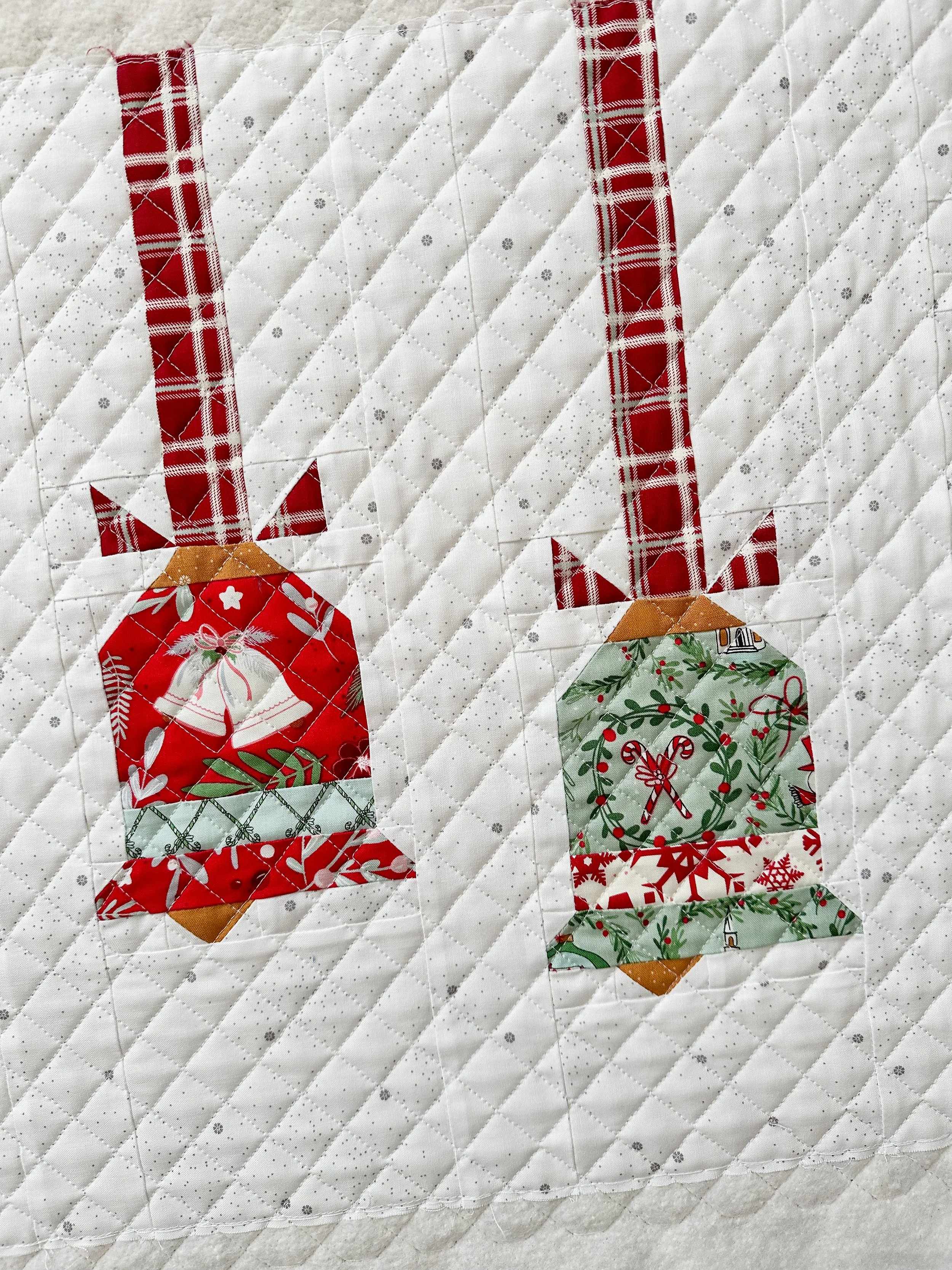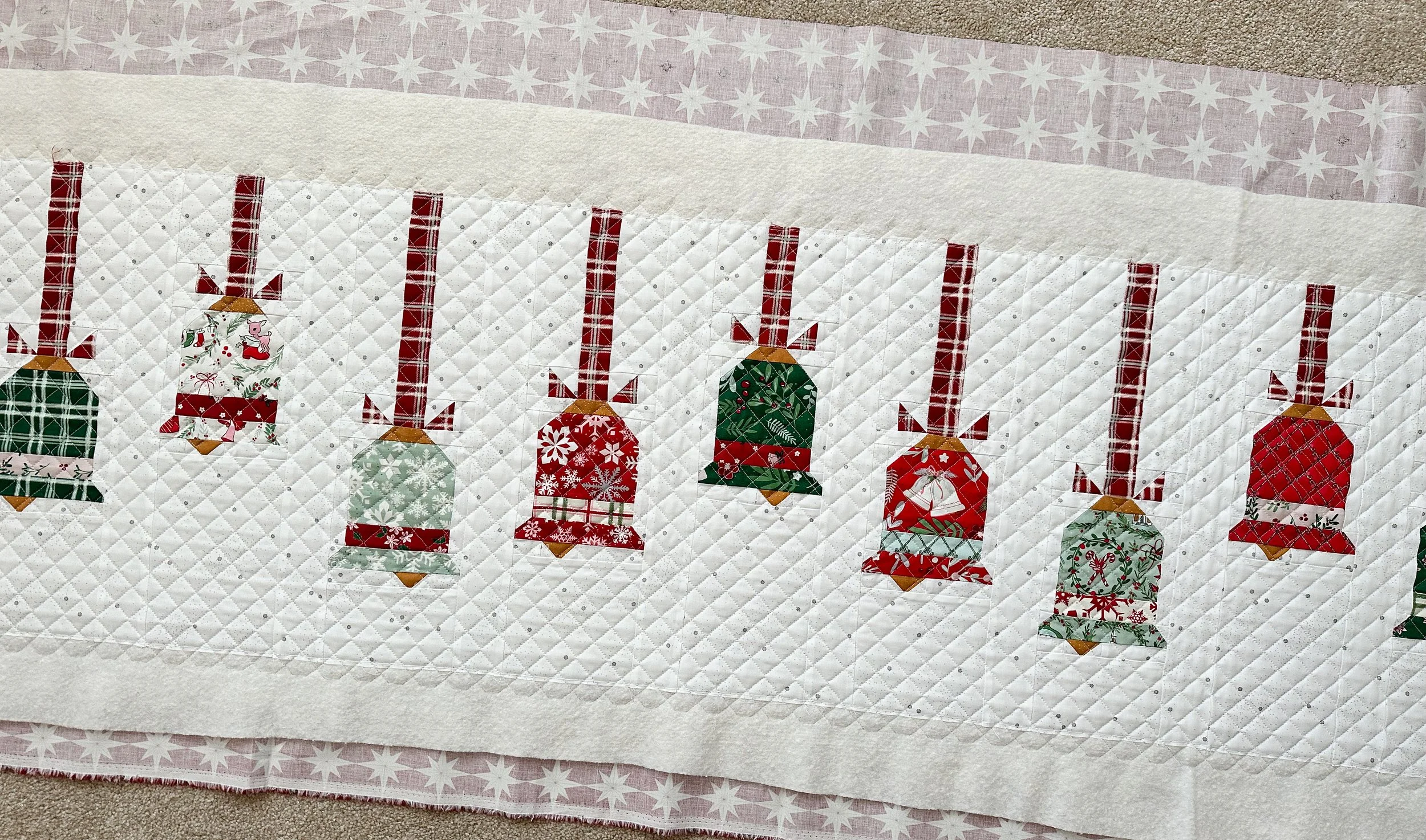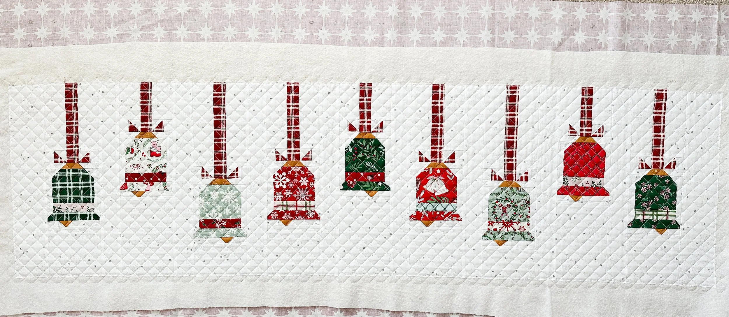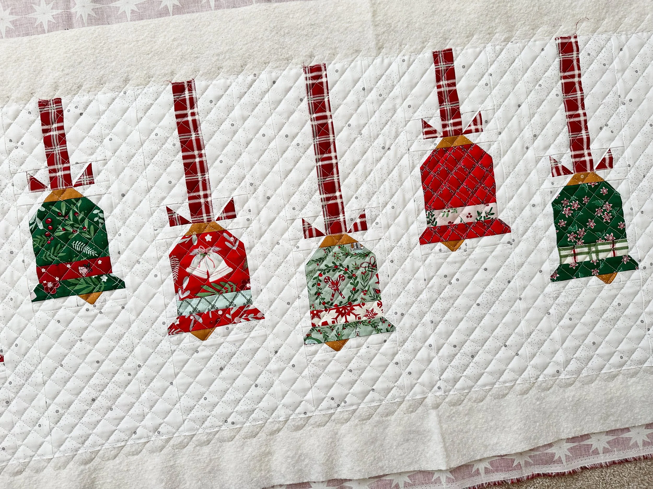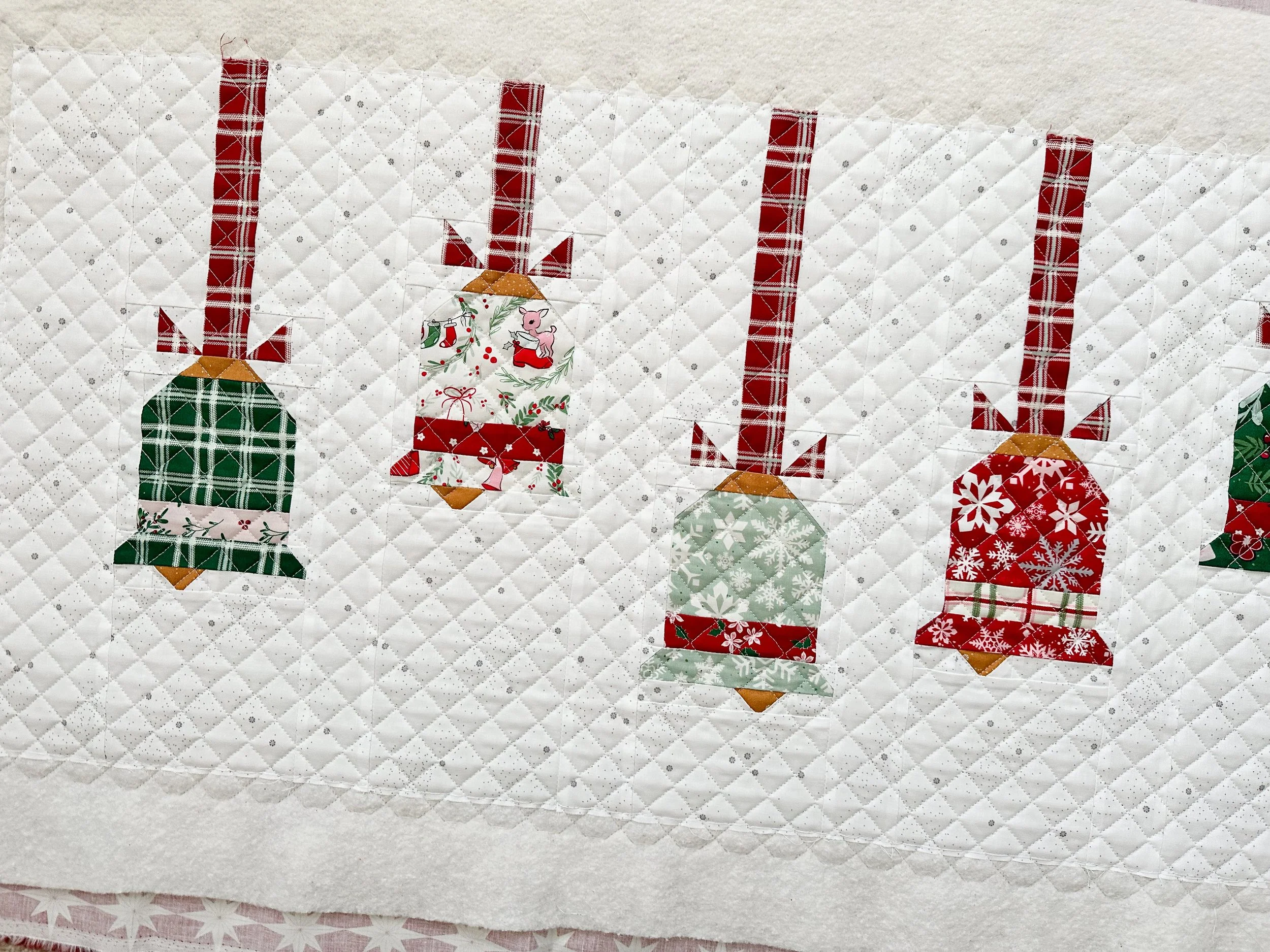 Nancy made this darling Vintage Bells runner by Beverly McCullough from Flamingo Toes. I found the PDF pattern at Fat Quarter Shop. Go to: https://www.fatquartershop.com/vintage-bells-downloadable-pdf-runner-pattern-flamingo-toes