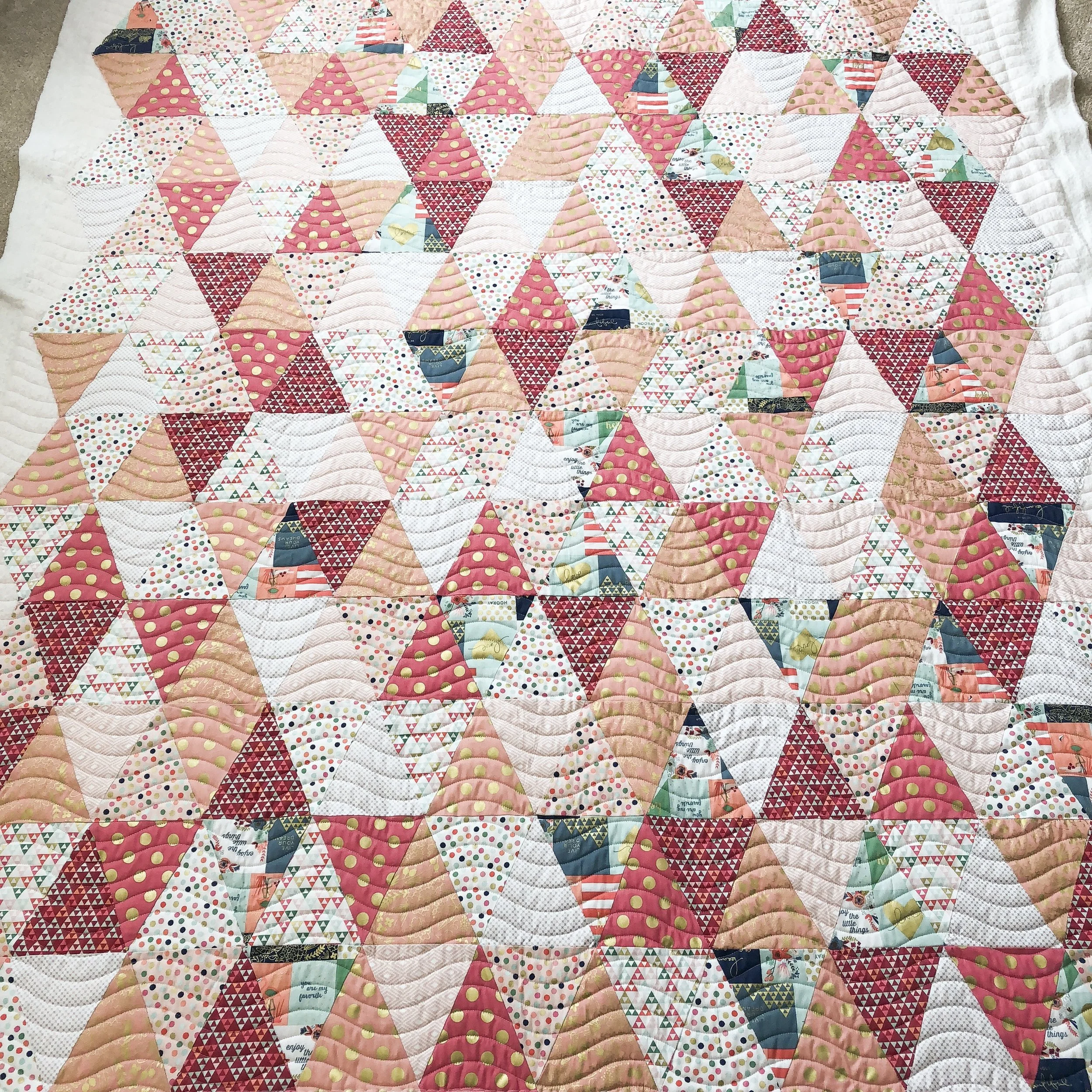 Skye made this super cute triangle quilt for her daughter. I love the gold metallics in some of the fabrics.