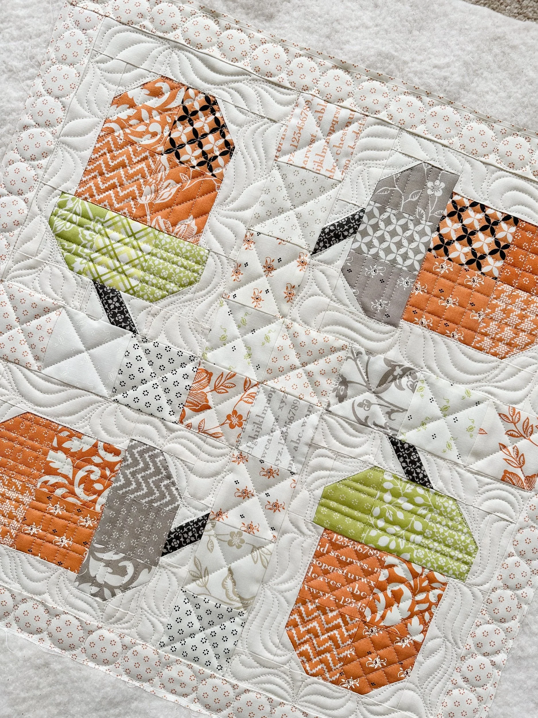 I used the amazing Triplet panto by Ambling Vines, which is available at Ma Tante Quilting. It’s a perfect design to pair with these lovely fabrics.