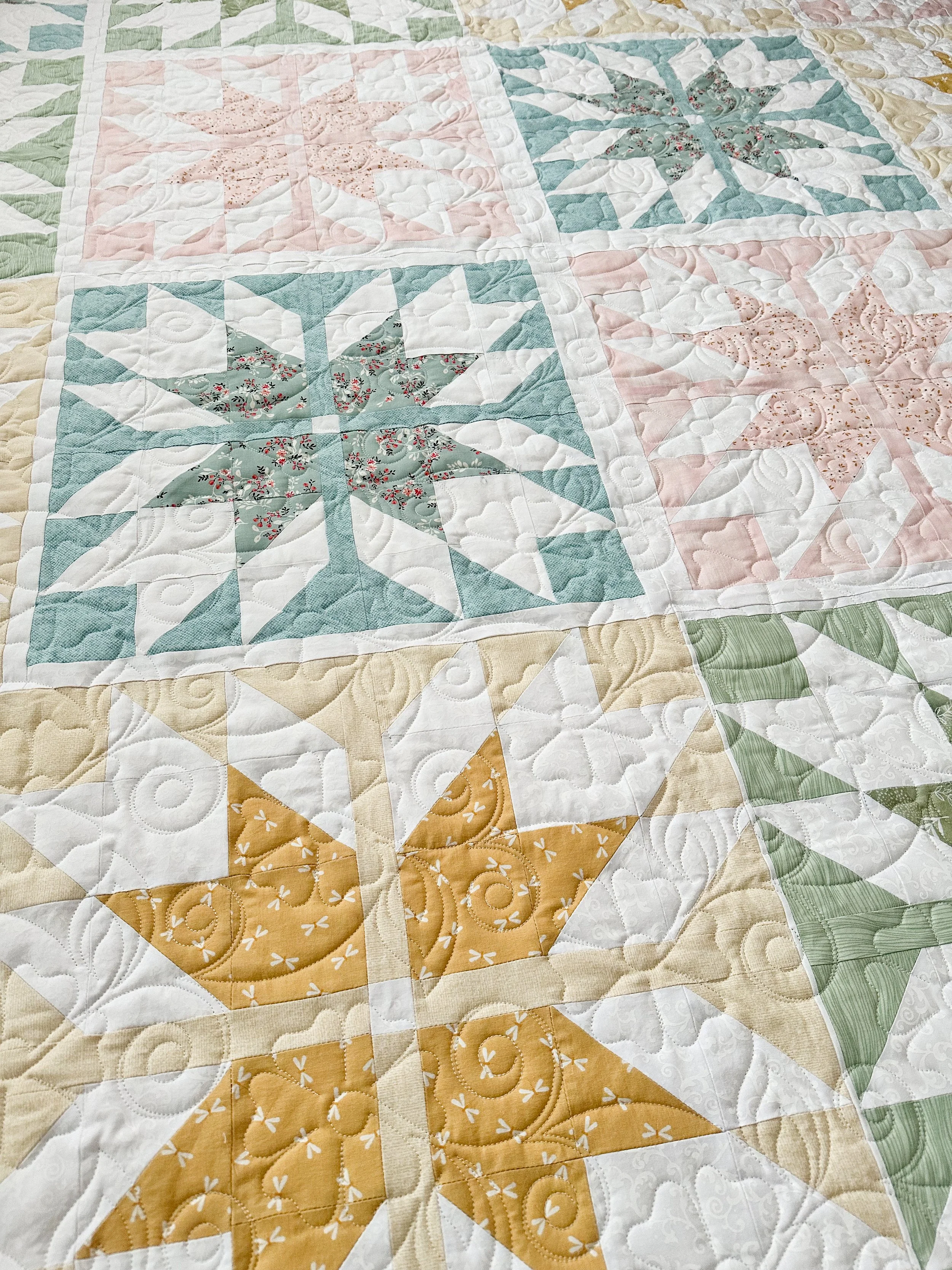 This pattern is so versatile. You could make a christmas or 4th of july or winter quilt. If you’re looking for a star quilt, this is a great one!